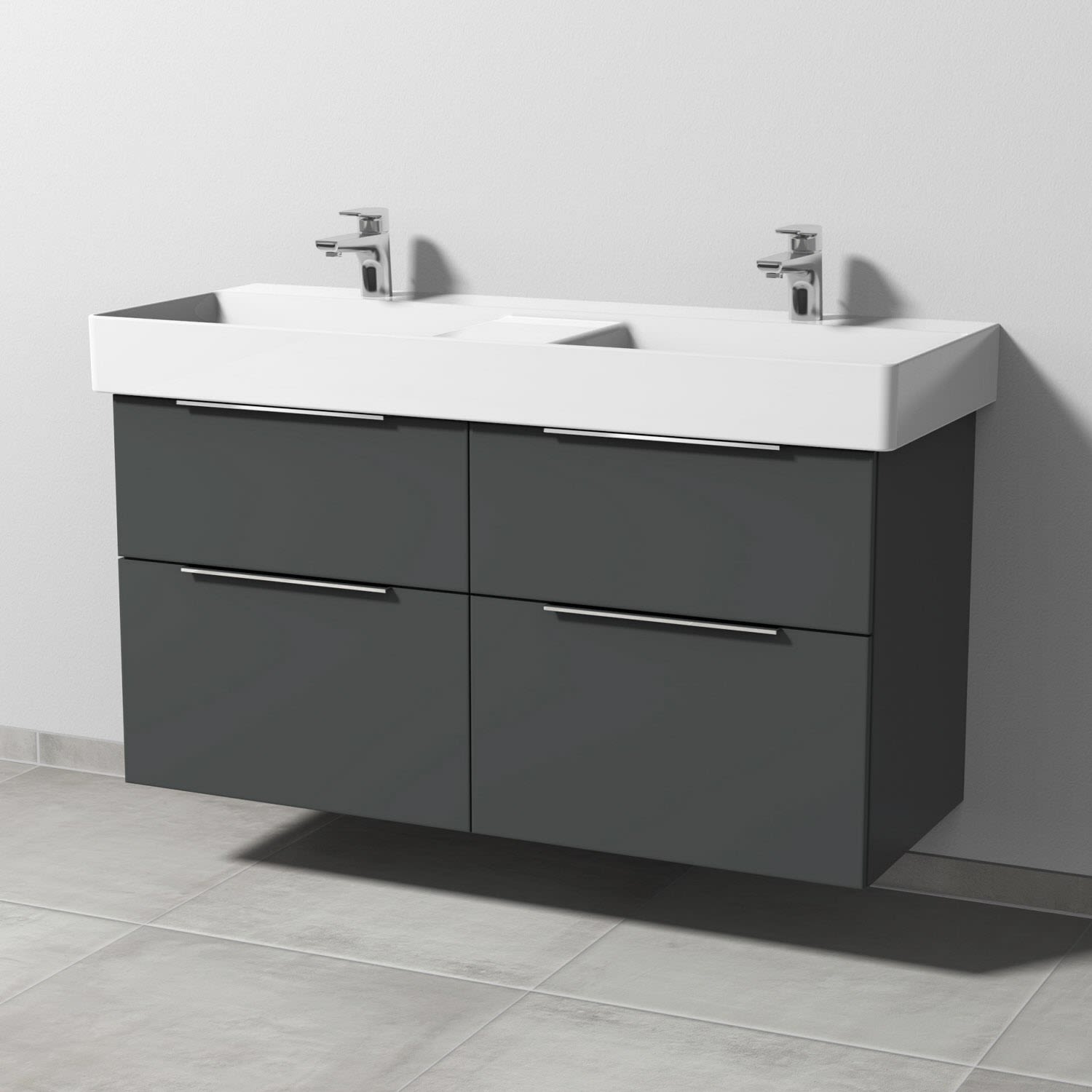 Waschtischunterschrank LAVOA 120 cm mit Doppelwaschbecken - Farbe wählbar, Farbe Badmöbel:Anthrazit matt, Waschbecken:Weiß glänzend, Metallgrif...