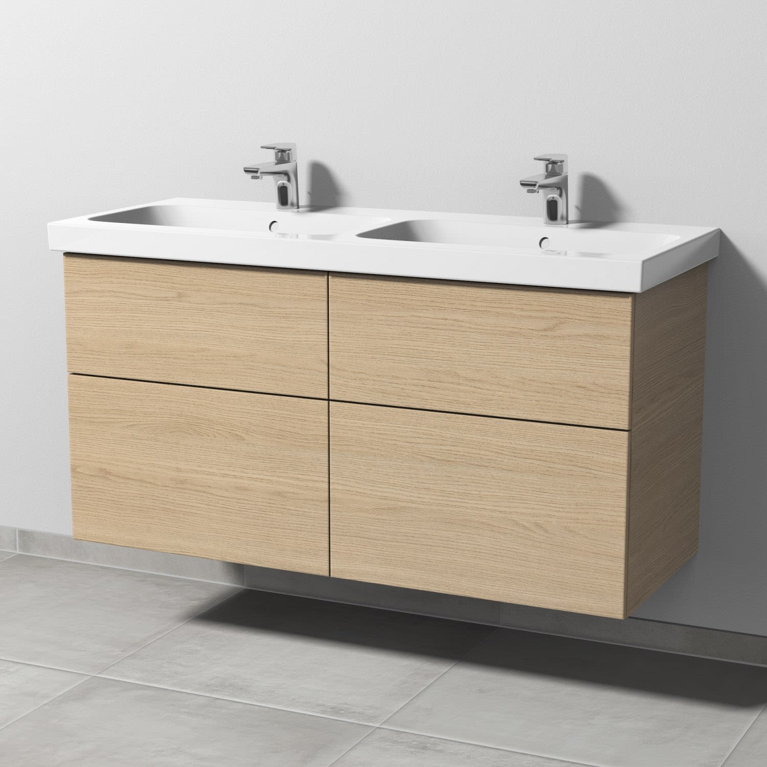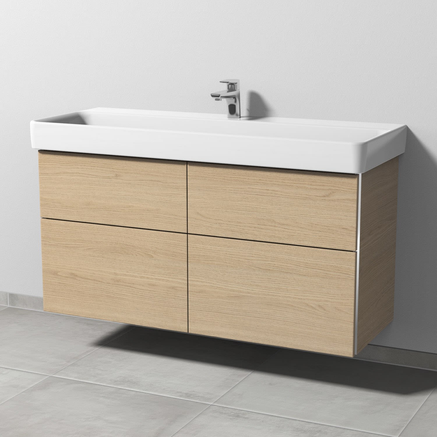 Sanipa 3way Waschtischunterbau für Keramik-Doppelwaschtisch Acanto 120 cm, 4 Auszüge mit Griffleisten, Badmöbel,