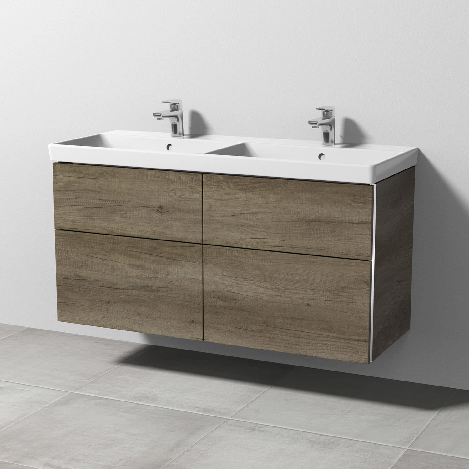 Megabad Lodge Doppel-Waschtischunterschrank 120 cm mit 2 Auszügen für Waschtisch LAUFEN Val HMW12056D03KEILV121, Badmöbel,