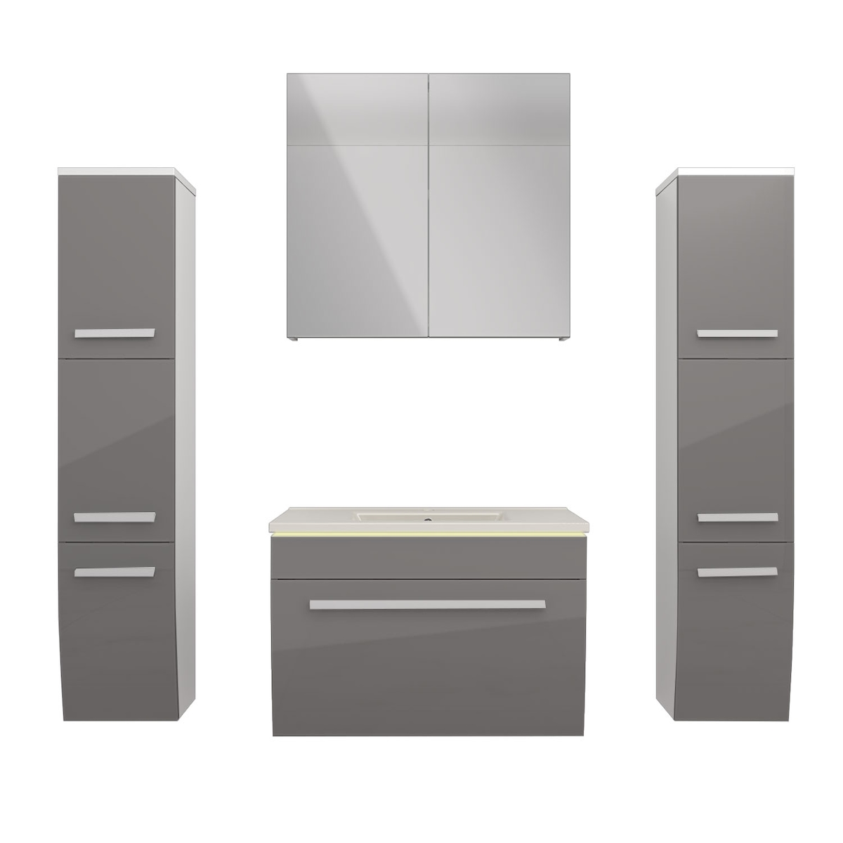 AcquaVapore Badmöbel Set Gently 3 V3 Weiß/Grau Badezimmermöbel Badspiegel Waschtisch 80 cm ohne LED-Beleuchtung
