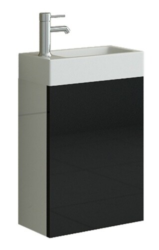 Badset Badmöbel Push Open Schubladen Wüfeloptik Fronten aus MDF Edle Optik Modell: Linz in schwarz Hochglanz Jet-Line