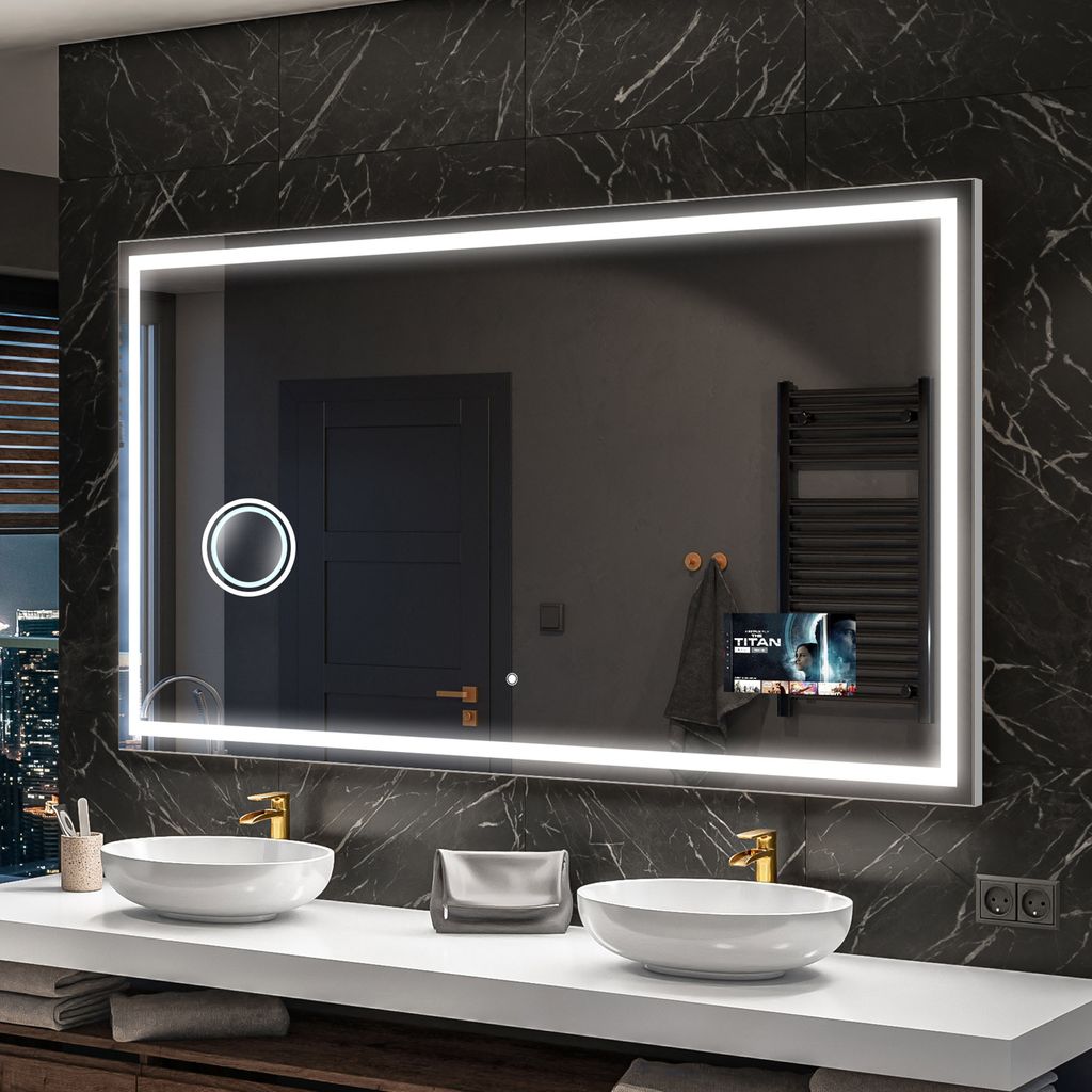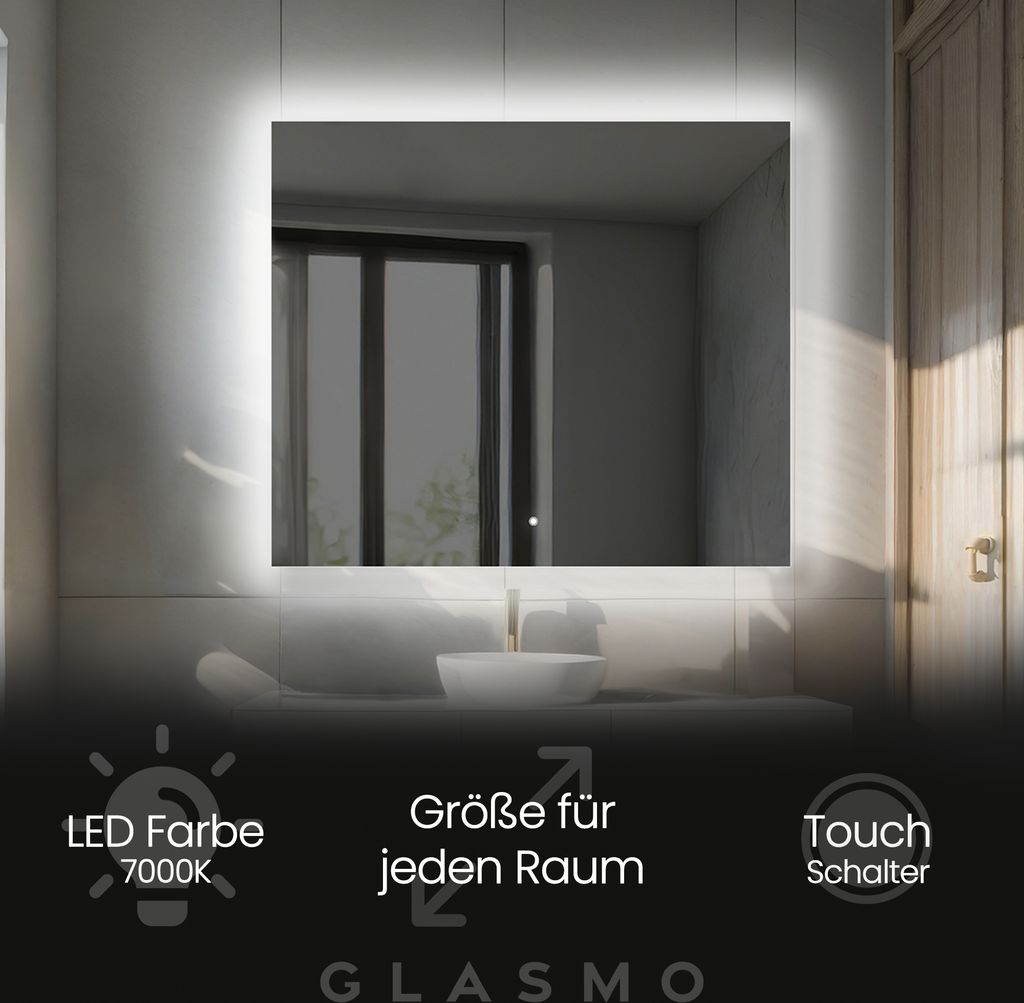 Badspiegel 120x80 cm - Horizontal mit LED Beleuchtung - LED Farbe Neutrallweiß 4500K - T101 - Touch Schalter - Individuell Nach Maß - Beleuchtet ...