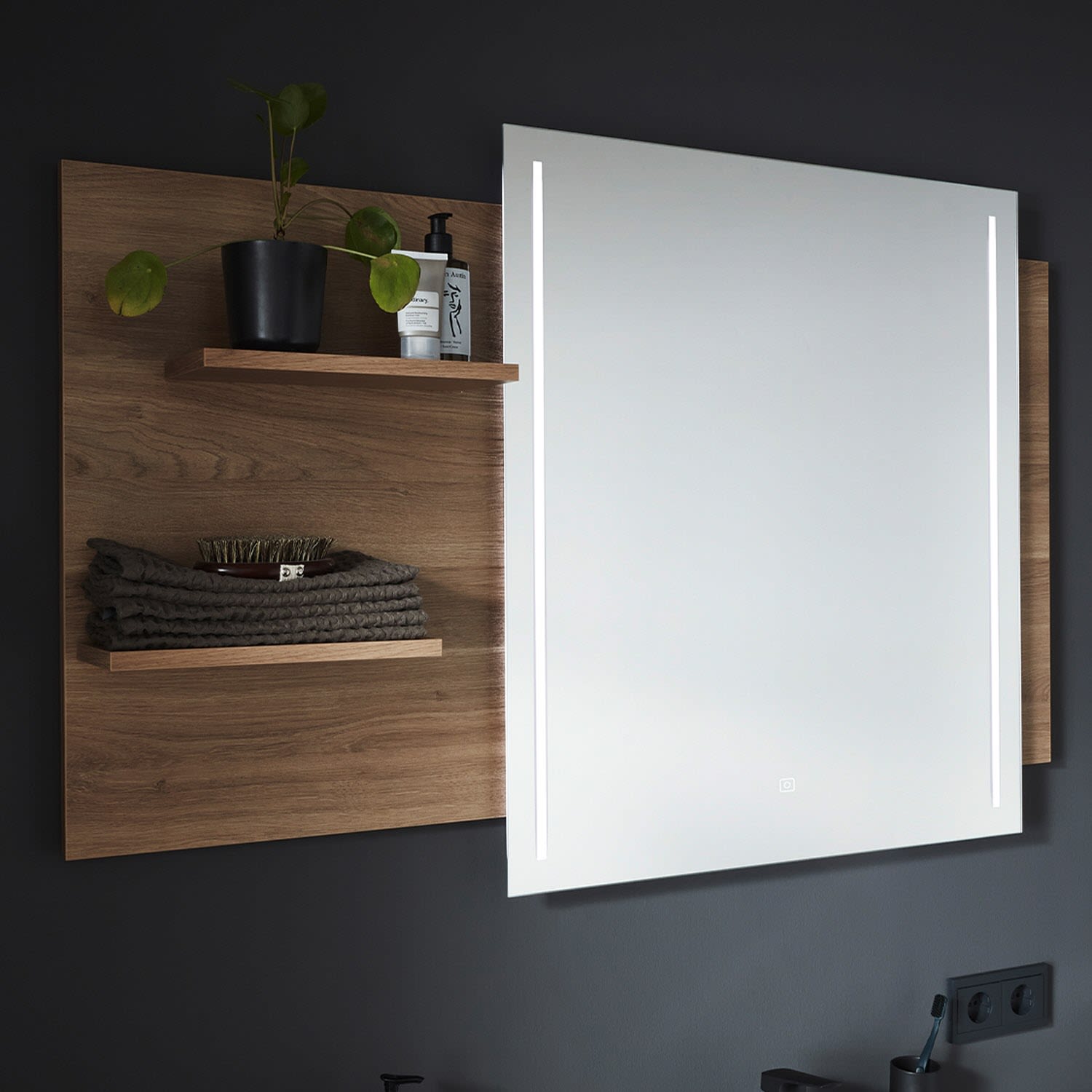 Puris Badspiegel 120x80 cm mit 2 LED Streifen und Ablagen, Spiegel,