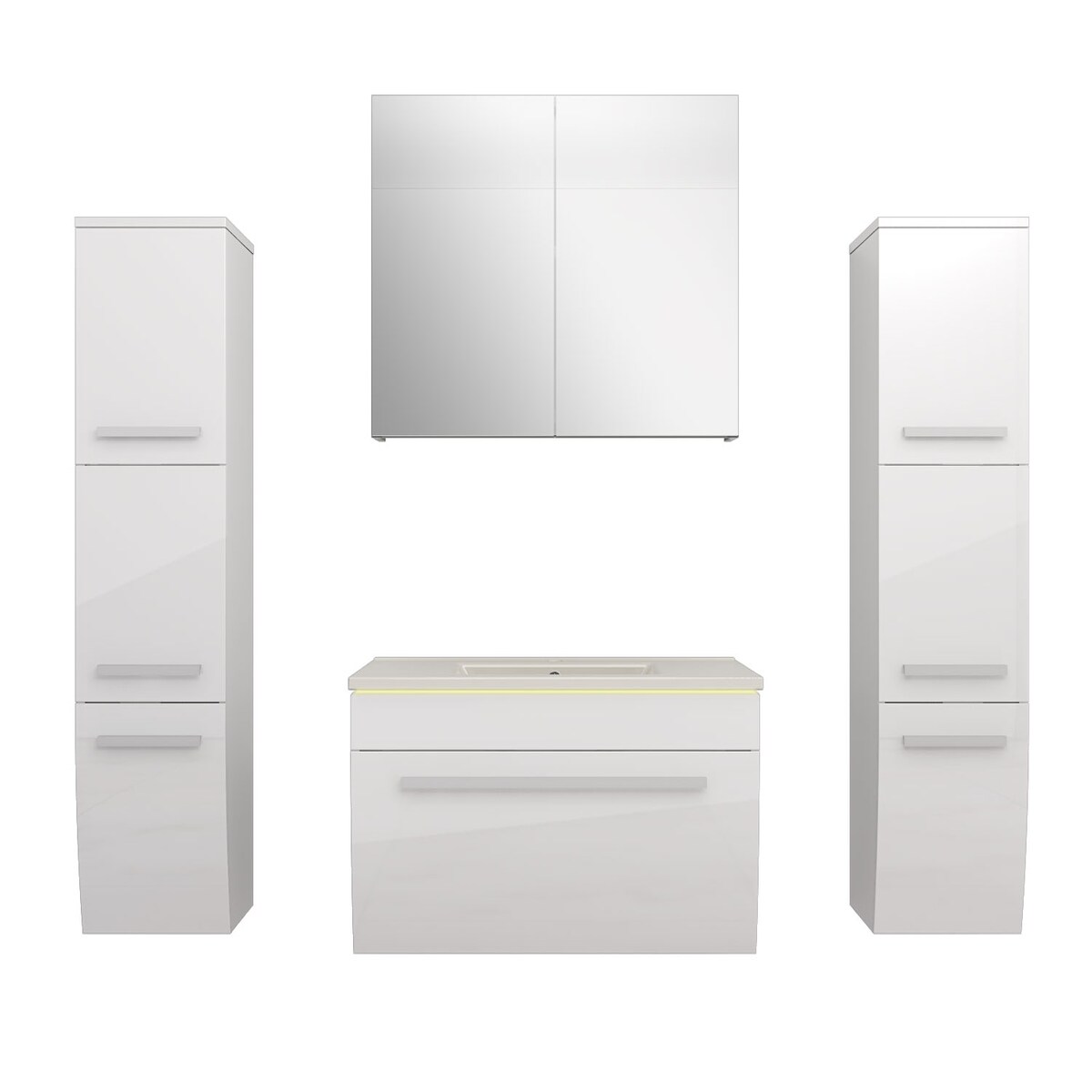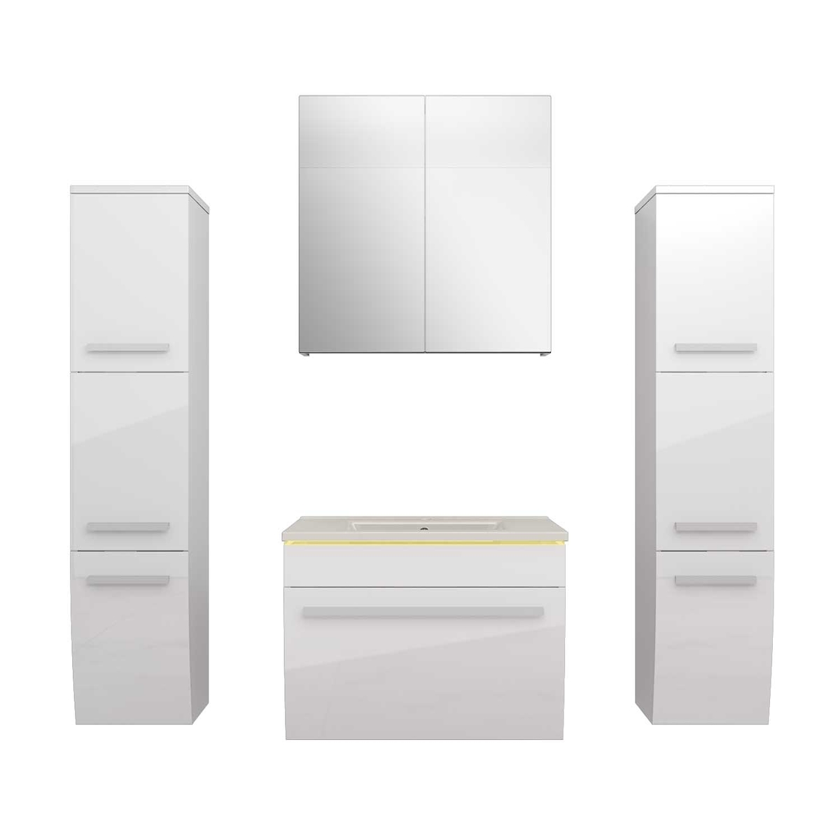 Badmöbel Set Gently 3 V3 Weiß Badezimmermöbel Badspiegel Waschtisch 80 cm ohne LED-Beleuchtung