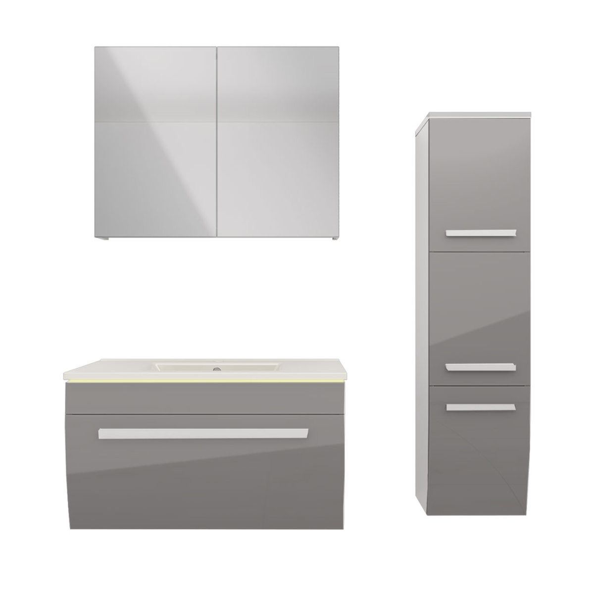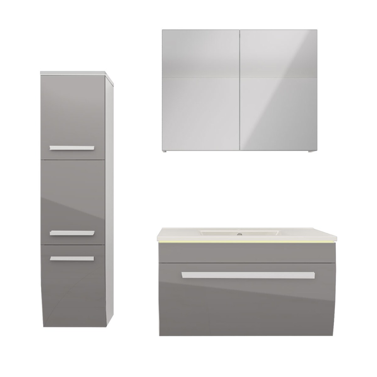 AcquaVapore Badmöbel Set Gently 3 V3 Weiß/Grau Badezimmermöbel Badspiegel Waschtisch 80 cm ohne LED-Beleuchtung
