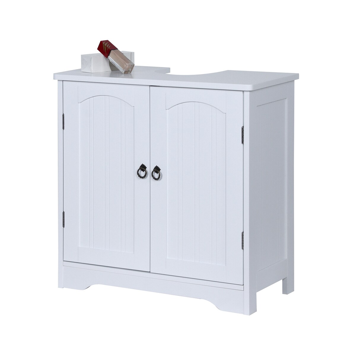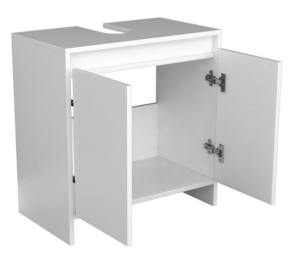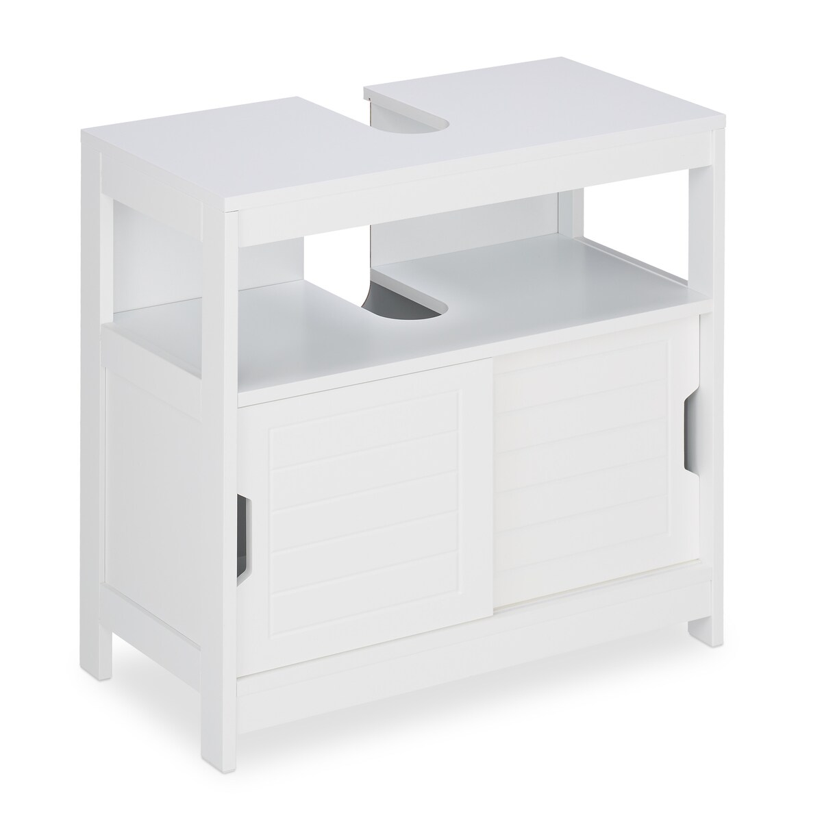 Relaxdays Waschbeckenunterschrank, 2 Fächer, Schiebetüren, Siphon-Ausschnitt, Badunterschrank, HBT: 60,5x60x30cm, weiß