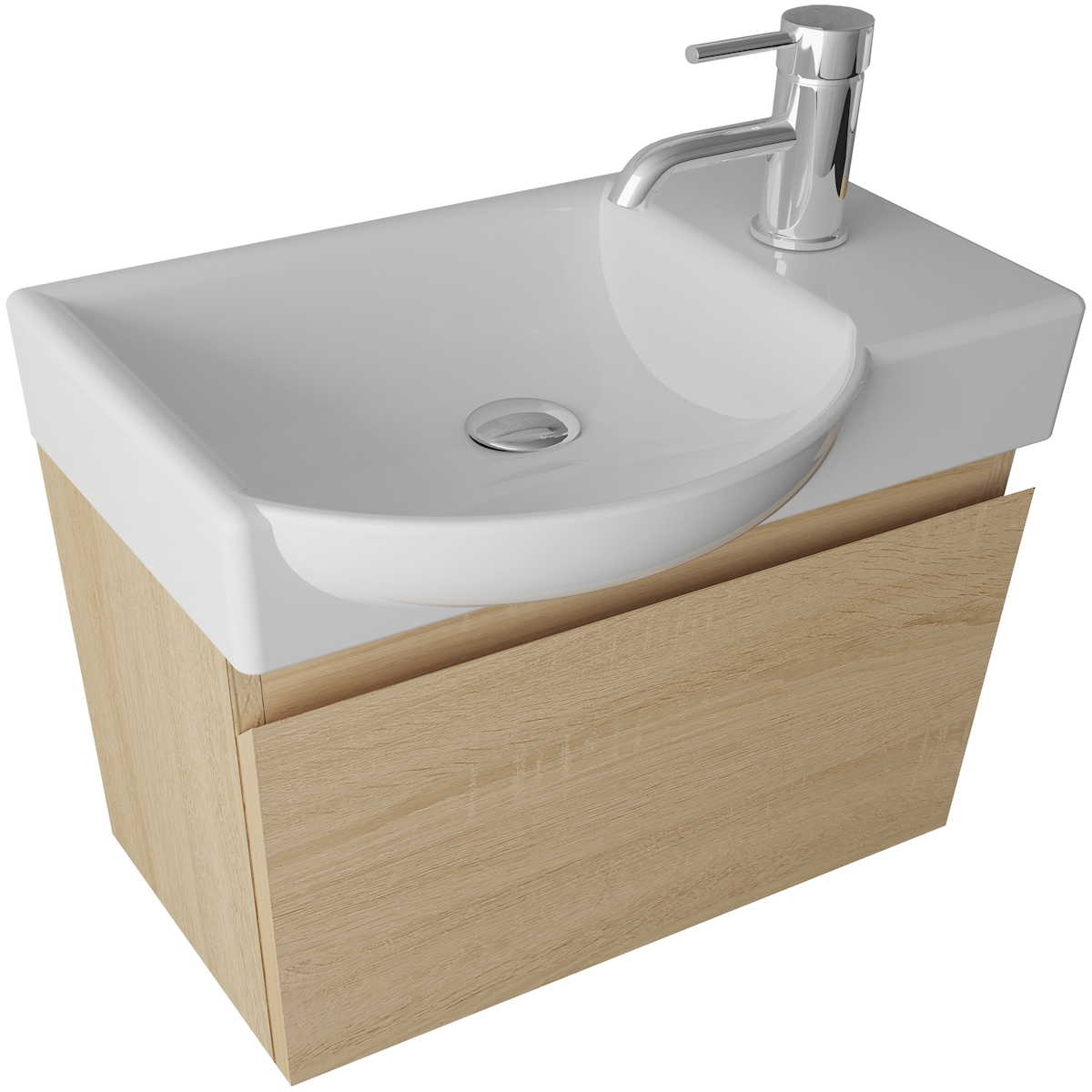 Furni Badunterschrank 60 cm mit Waschbecken – Korpus Eiche-Optik & Front Weiß Hochglanz, Vormontiert, Waschtisch-Set modern
