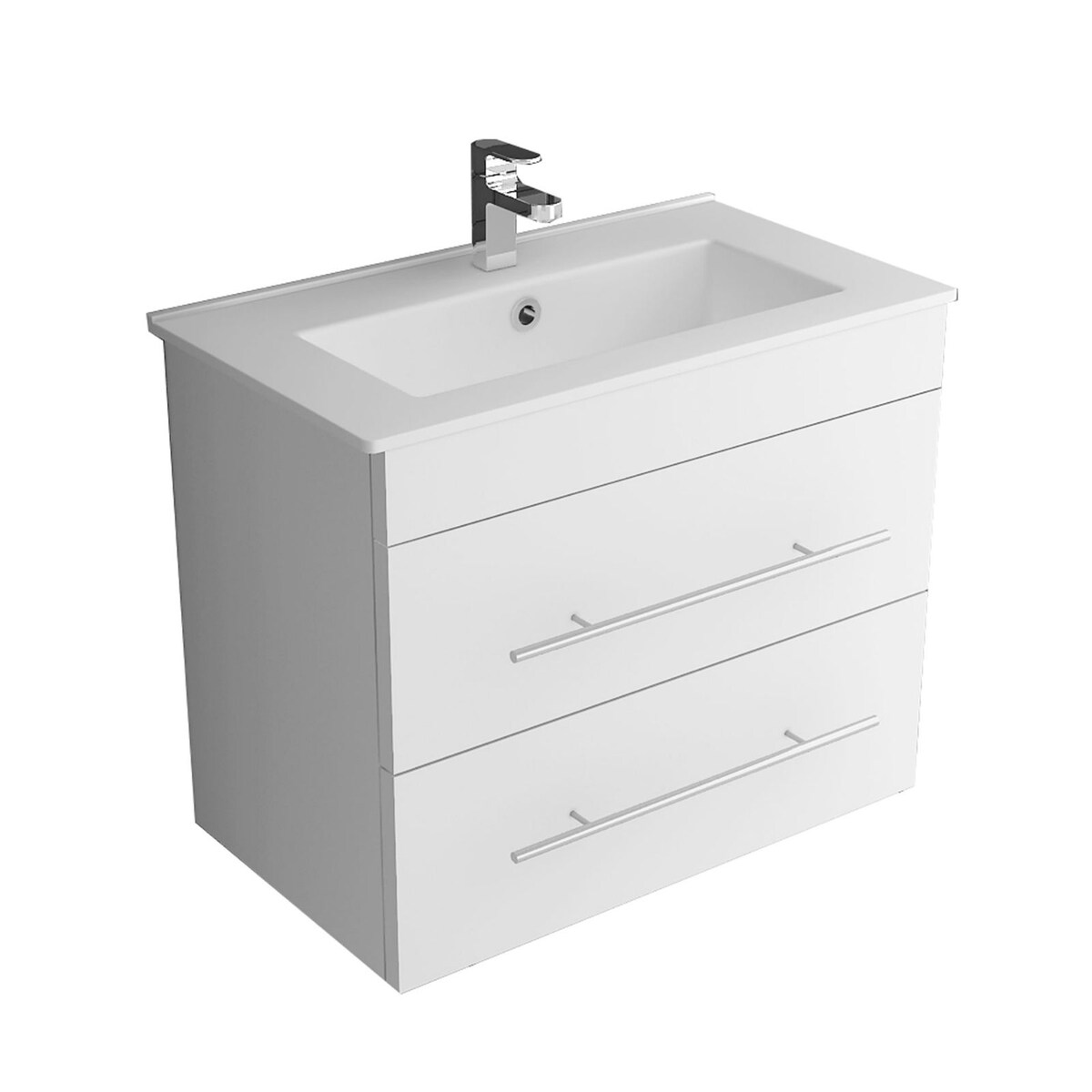 Furni Badunterschrank 80 cm Weiß Hochglanz lackiert – Vormontierter Waschbeckenunterschrank mit Griffmulde, Hängend, 2 Schubladen