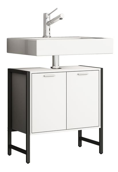 Relaxdays Waschbeckenunterschrank mit 2 Türen, HxBxT: 60 x 60 x 30 cm, MDF, Zink, Badunterschrank für Waschbecken, weiß