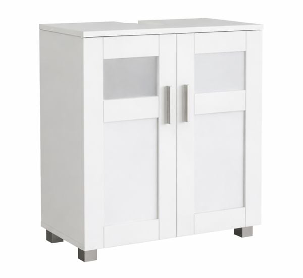 Relaxdays Waschbeckenunterschrank mit 2 Türen, HxBxT: 60 x 60 x 30 cm, aus MDF, Badunterschrank für Waschbecken, weiß