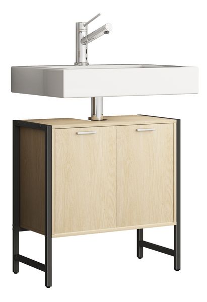 VCM Waschbeckenunterschrank, Holz Badschrank mit 2 Drehtüren, H. 60 x B. 60 x T. 29 cm, Badunterschrank Flonali