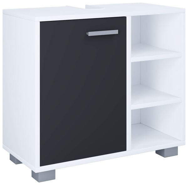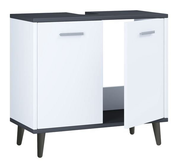 Waschbeckenunterschrank Blake 60x57x34 cm in Front weiß Hochglanz Korpus rauchsilber Nb - Badezimmer Badunterschrank Waschtischunterschrank - mode...