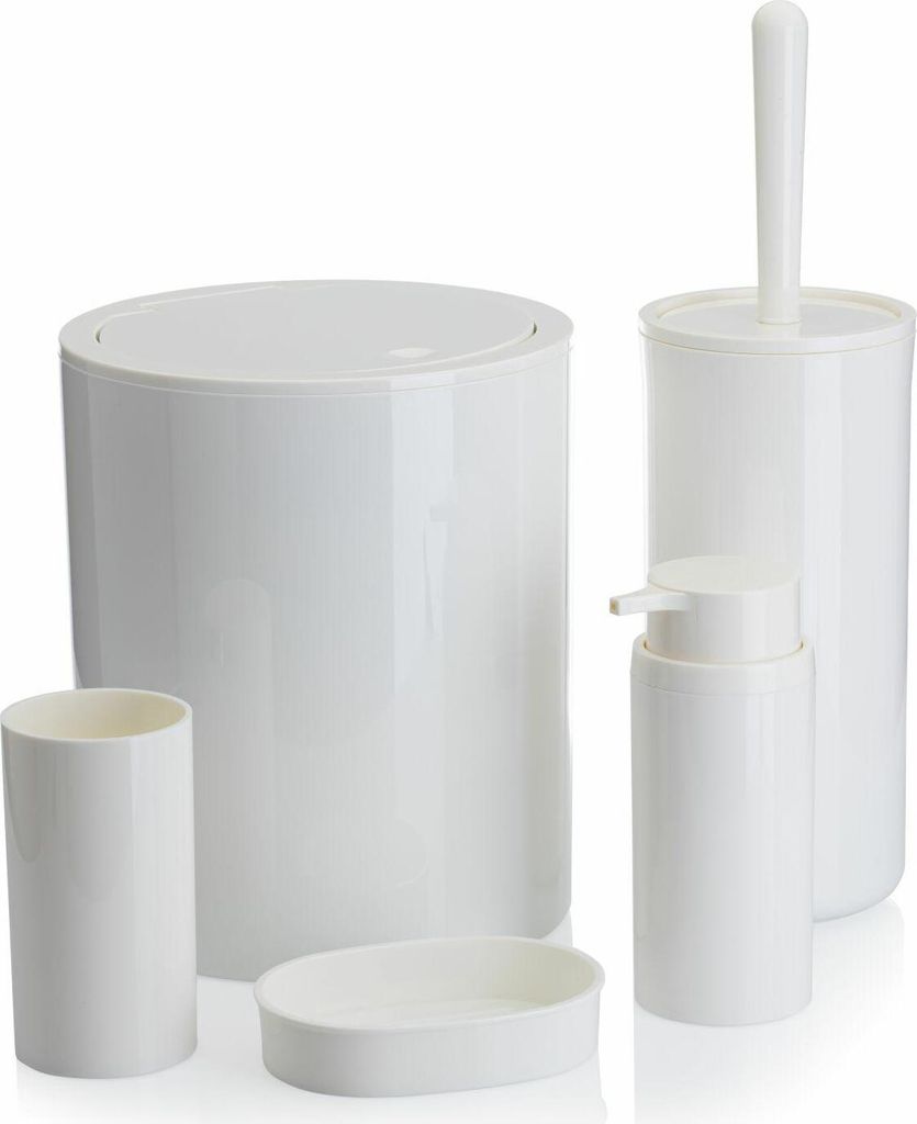 HowHomely | Badezimmer set, 5-teilig Badzubehör Seifenspender, WC Bürste, Seifenschale, Abfalleimer und Zahnputzbecher - Weiß