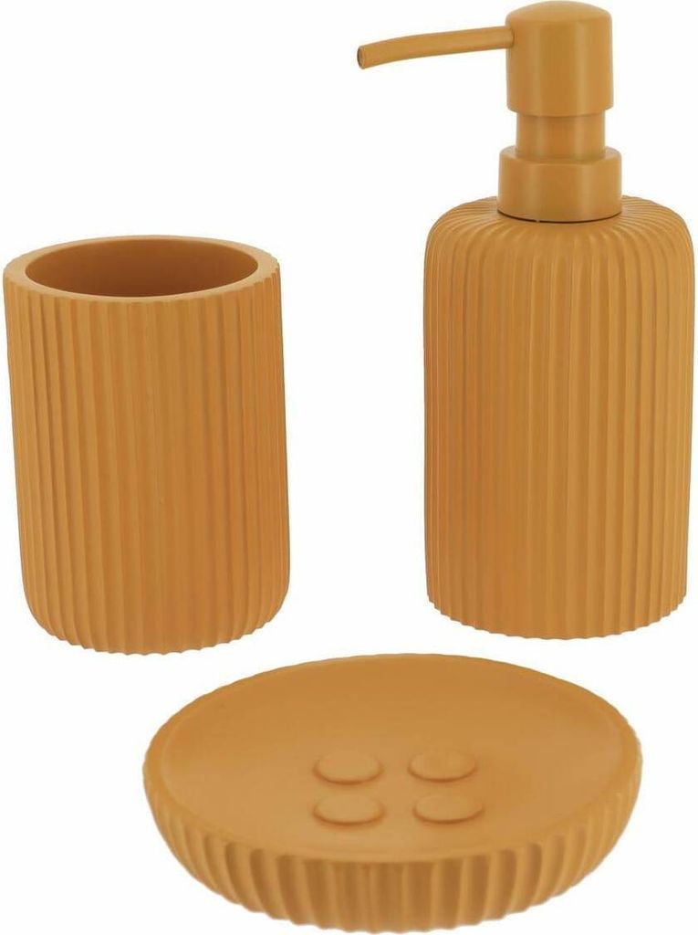Tendance Badzubehör Set 3-tlg Seifenspender Seifenschale Zahnputzbecher gelb Polyresin 7x7x17 cm