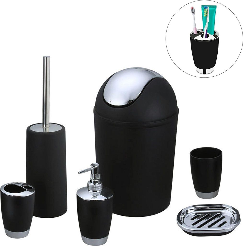 HowHomely Badezimmer set, 5-teilig Badzubehör Seifenspender, WC Bürste, Seifenschale, Abfalleimer und Zahnputzbecher Schwarz