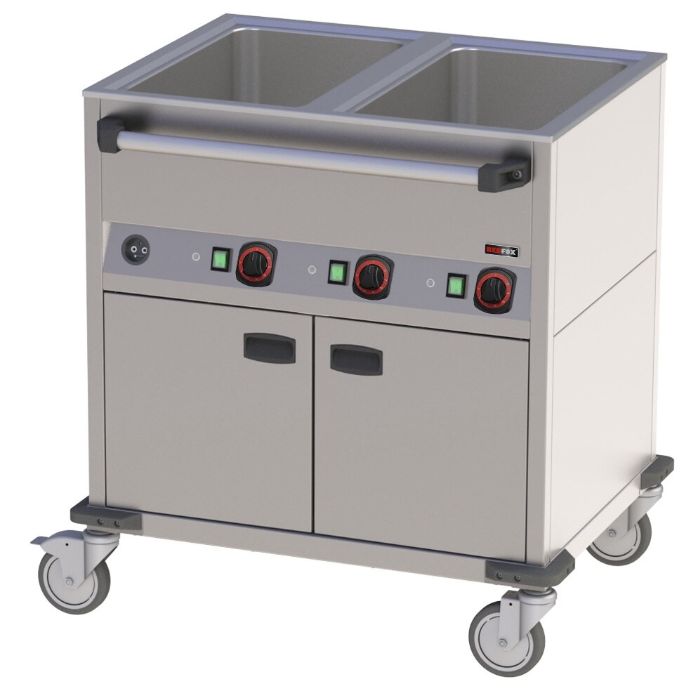 Thermowagen/Speisenausgabewagen Bain-Marie, 2 GN1/1 Behälter, separate Temperatureinstellungen, B 840 mm x T 650 mm x H 850 mm