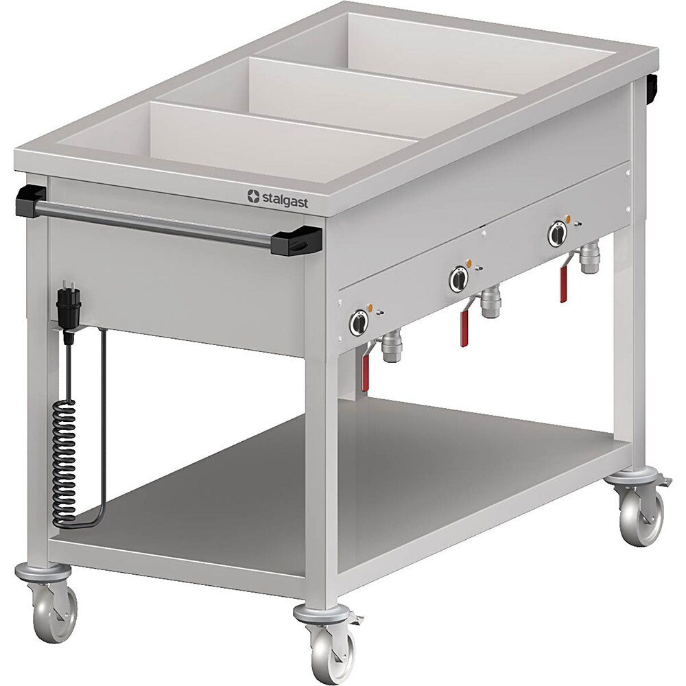 Stalgast Edelstahl Bain-Marie Wagen mit separaten Becken, für 3x GN1/1205x600x850 mm