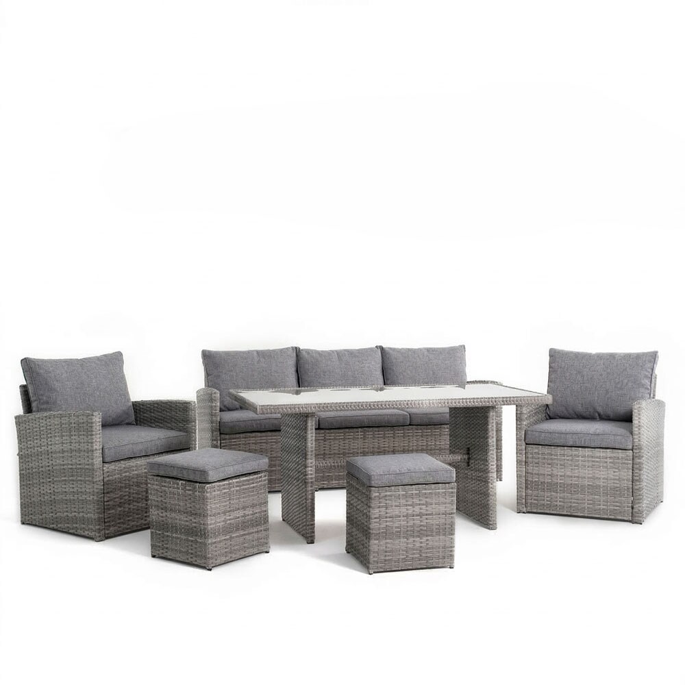 okwish Gartensofa-Set,L-förmiges Sofa mit 1 Sessel und 2 Hockern,Sitzgruppe,Ecksofa mit Glastisch,Freizeitsofa,für 8 Personen,für Balkon,Grau