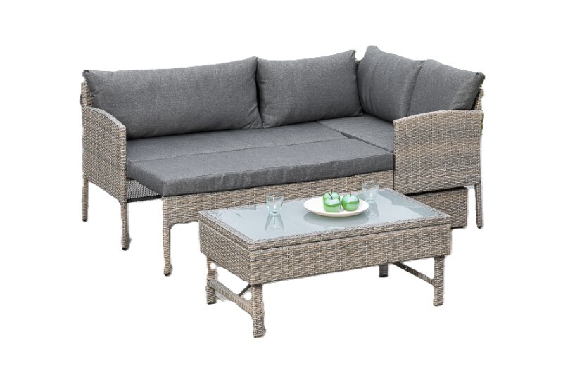 Merax Modulares Gartenlounge-Set für 5 Personen, Gartenmöbel Balkonset Sitzgruppe(3-tlg), inkl. Kissen, wetterfeste Loungemöbel, Grau