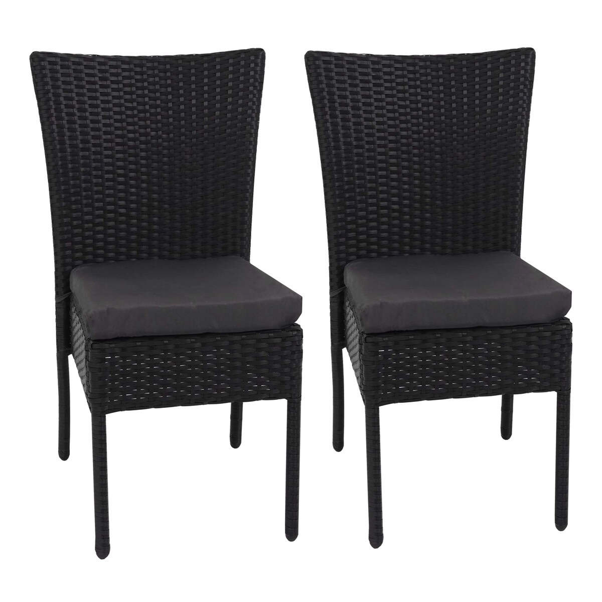 Mendler 2er-Set Poly-Rattan Stuhl HWC-G19, Balkonstuhl Gartenstuhl, stapelbar ~ schwarz, Kissen dunkelgrau