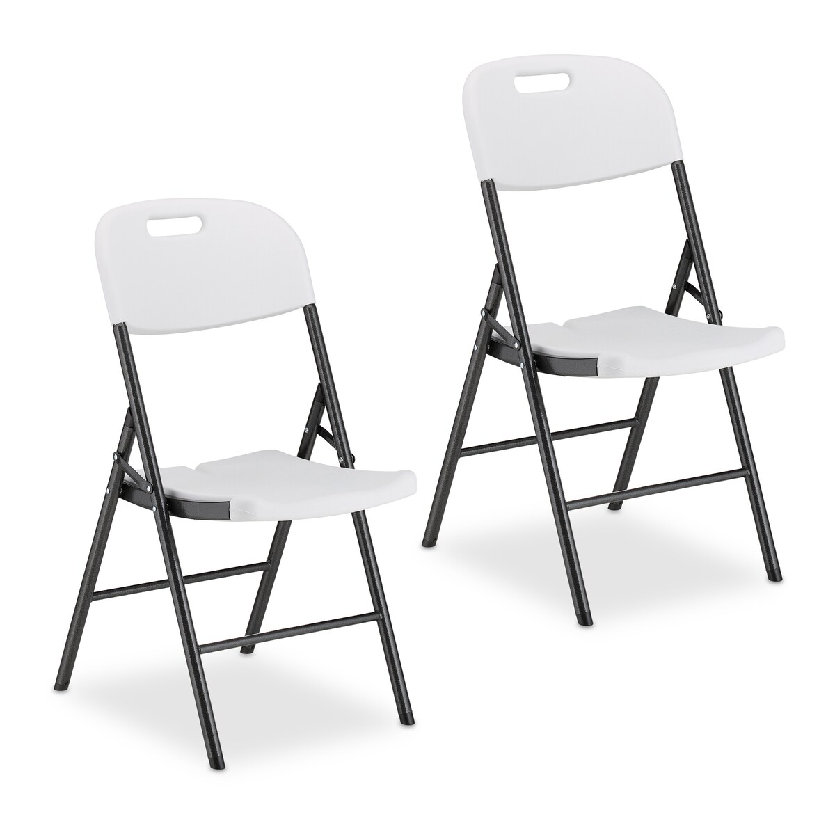 Relaxdays Klappstuhl, 2er Set Gartenstuhl für Terrasse & Balkon, 150 kg, wetterfest, klappbar, Balkonstuhl, schwarz/weiß