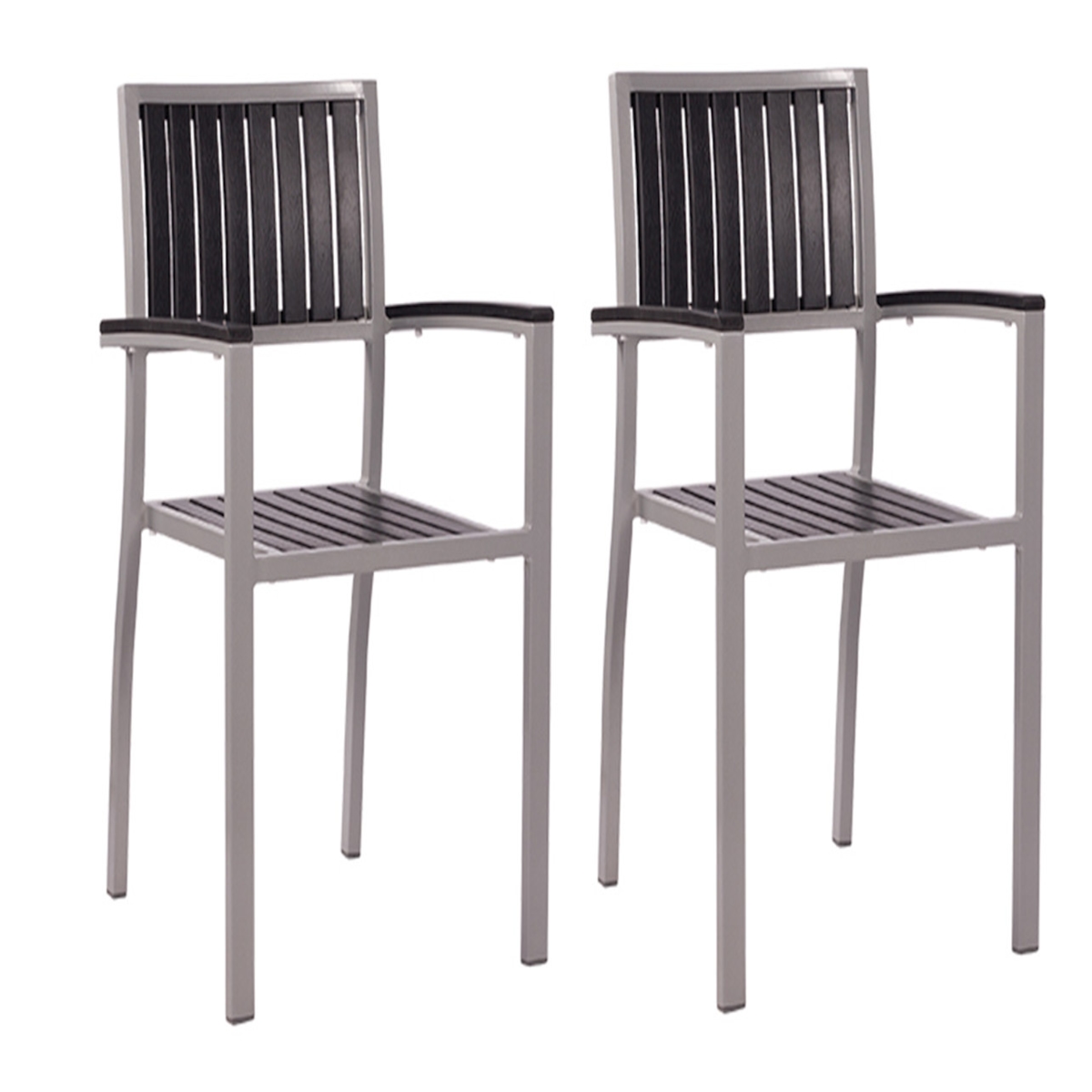 GOPLUS Gartenstuhl 2er Set, Barhocker Barstuhl mit hohe Rückenlehne, Armlehnen & Fußstütze, Balkonstuhl aus Metall bis 180kg belastbar, Braun