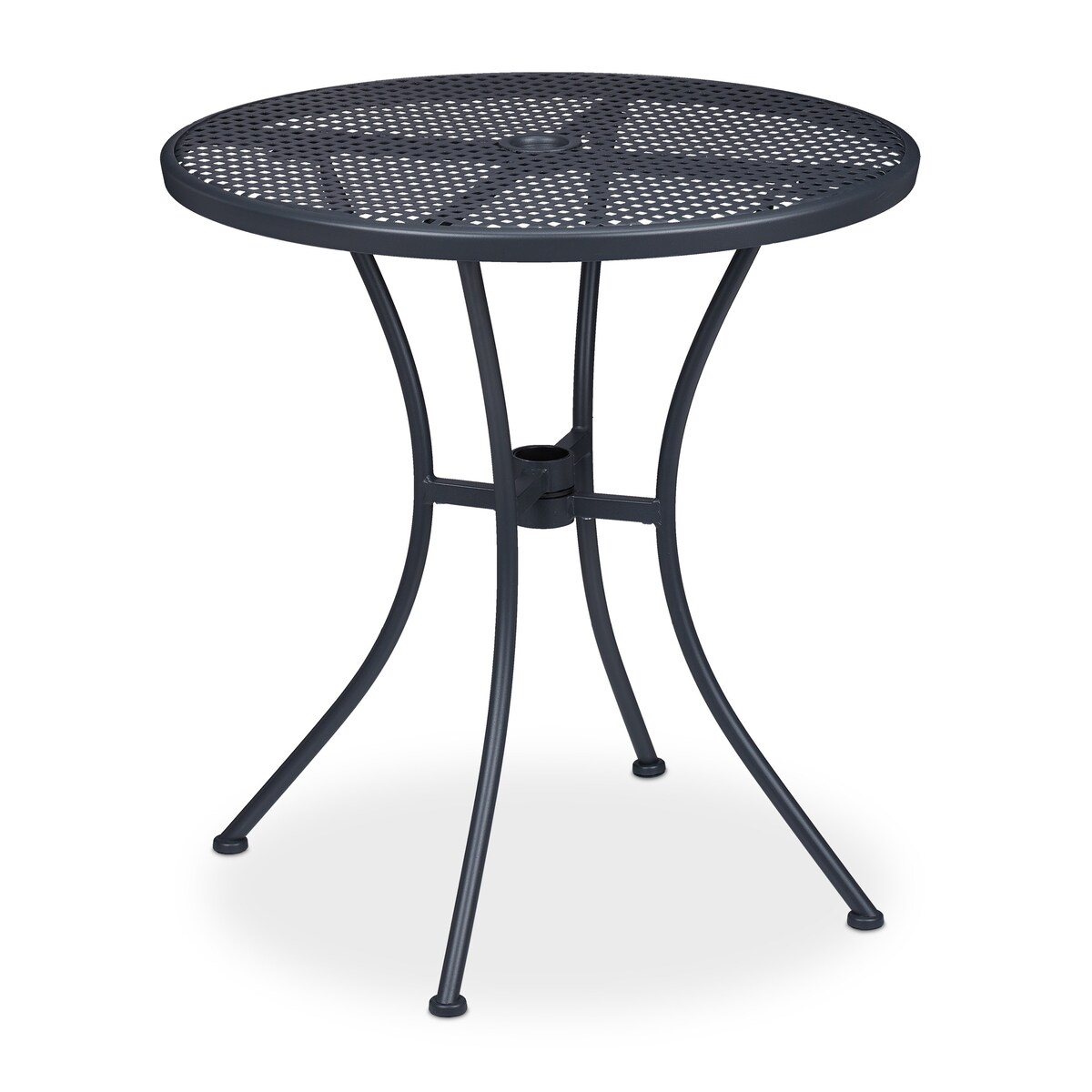 Relaxdays Gartentisch, mit Schirmloch, Gitter-Optik, wetterfest, Stahl, HxD: 72 x 70 cm, runder Balkontisch, anthrazit