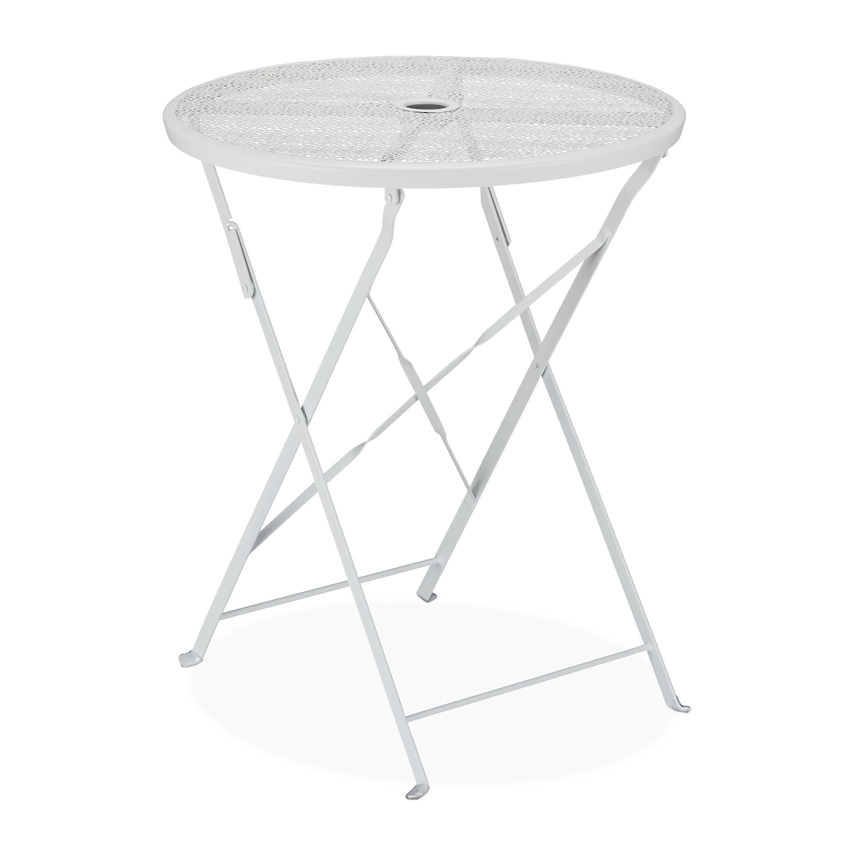 Relaxdays Balkontisch, Schirmloch, Terrazzo Muster, HxD: 71,5 x 60,5 cm, Stahl, klappbar, runder Gartentisch, weiß