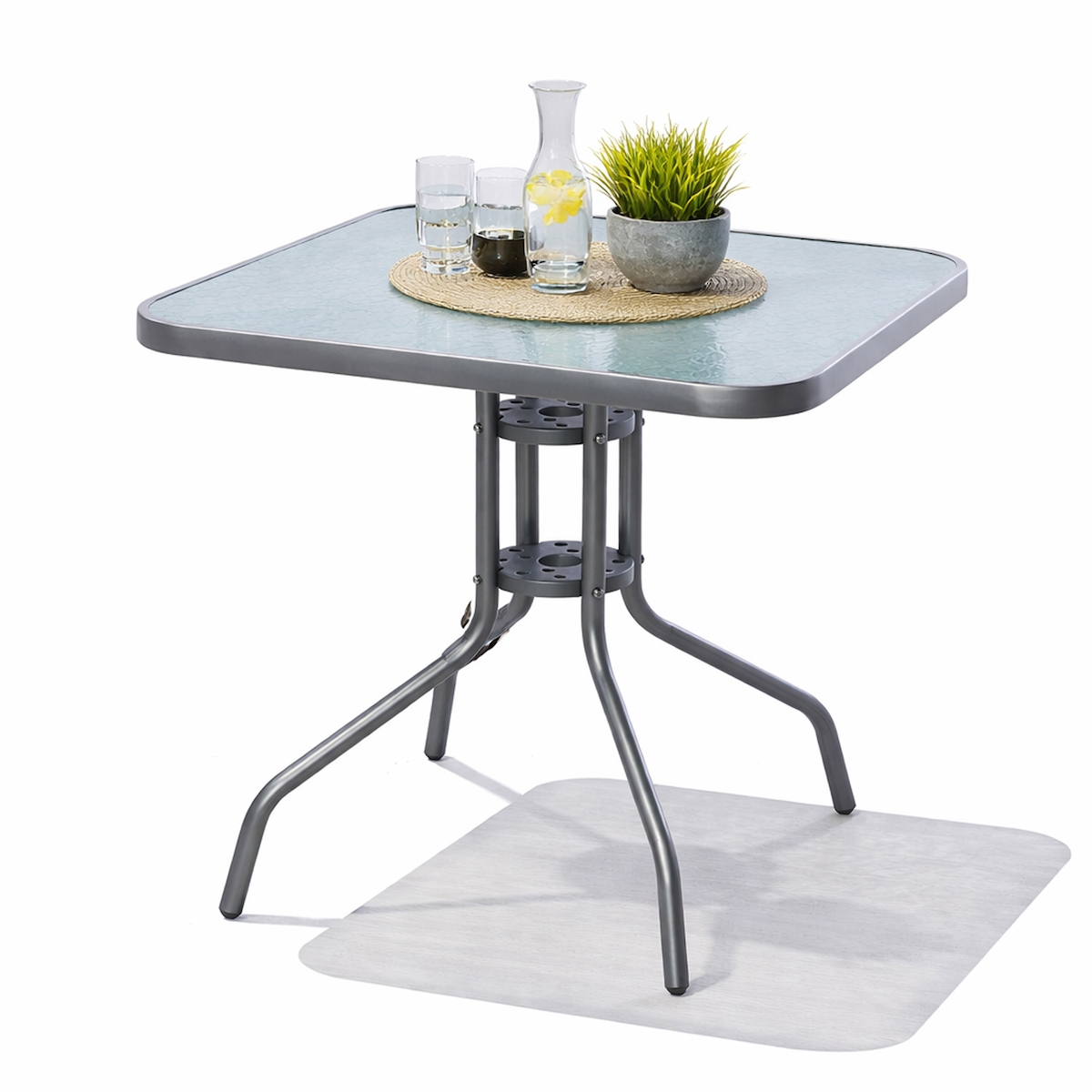 Gartentisch Glastisch Beistelltisch Balkontisch Viereckig 60 x 60 x 70 cm Metalltisch für Innen- und Außenbereich