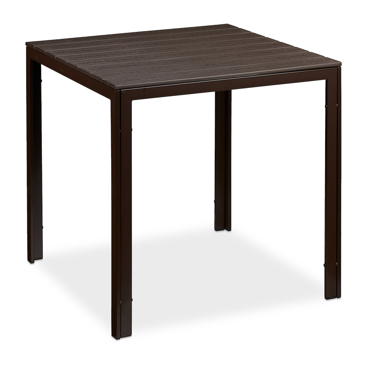 Relaxdays Gartentisch quadratisch, Holzoptik, Esstisch Garten, Balkon, Terrasse, 74,5x77,5x77,5cm, Balkontisch, braun