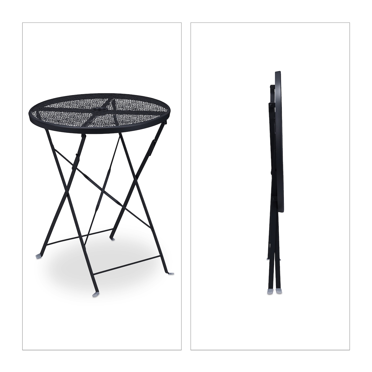 Relaxdays Balkontisch klappbar, HxD: 71,5 x 60,5 cm, wetterfester Gartentisch mit Schirmloch, rund, Stahl, schwarz