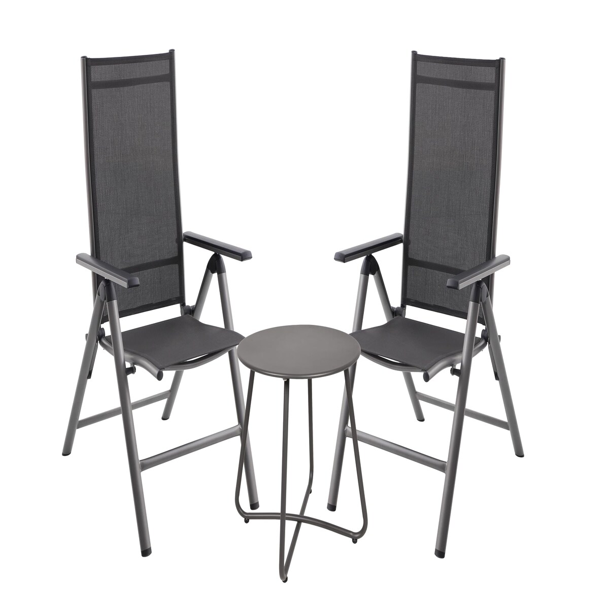 DELUKE Balkonmöbel-Set INES 3-tlg. - Kunststoff, Schwarz | Balkon-Set Gartenmöbel-Set Sitzgruppe für Balkon Balkonstuhl Balkontisch