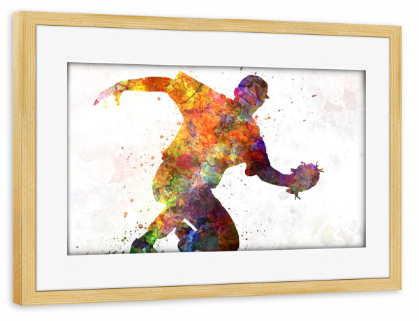 Poster mit Rahmen kiefer "Baseball player catching a ball" artboxONE - Sport - Baseball,Bat,Colorful,America,Splash,Stadium,Sport,Sports