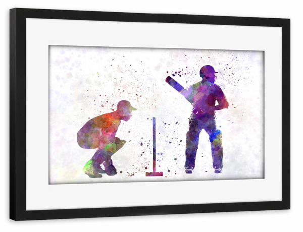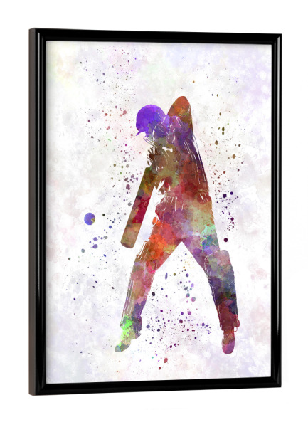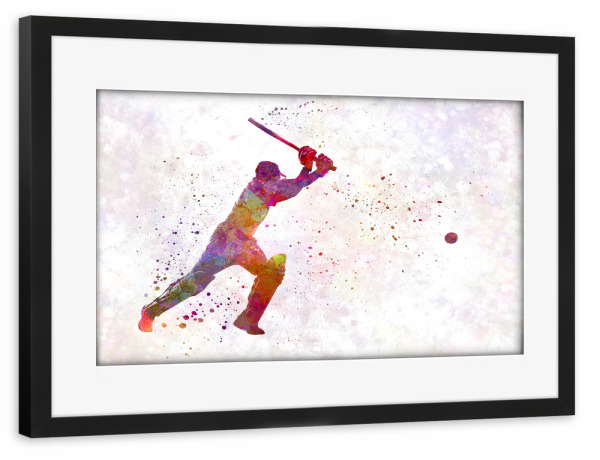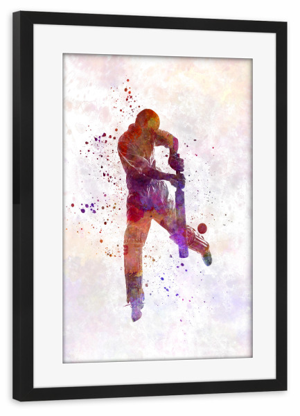 Poster mit Rahmen schwarz "Cricket player batsman" artboxONE - Sport - Sport,Sports,Color,Cricket,Bat,Ball,Player,Stadium,America,Bunt,Colorful