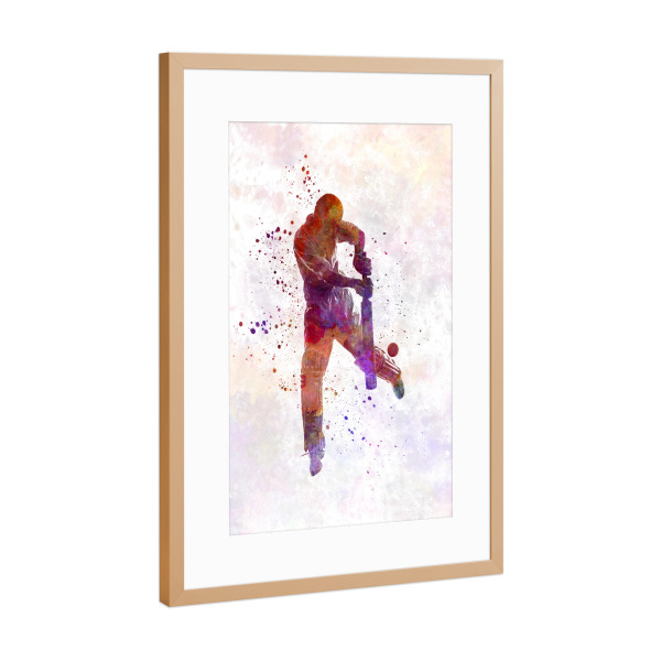 Poster mit Rahmen Kupfer "Cricket player batsman" artboxONE - Sport - Sport,Sports,Color,Cricket,Bat,Ball,Player,Stadium,America,Bunt,Colorful