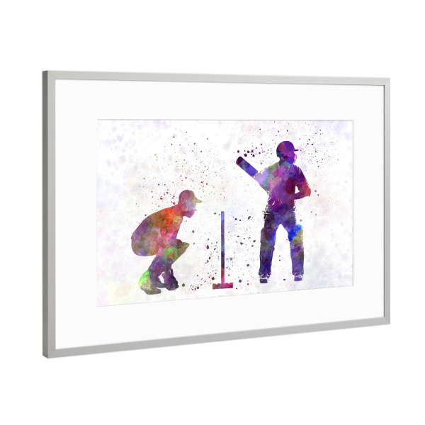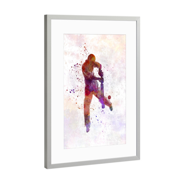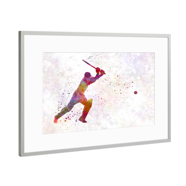 Poster mit Rahmen Silber "Cricket player batsman" artboxONE - Sport - Sport,Sports,Color,Cricket,Bat,Ball,Player,Stadium,America,Bunt,Colorful