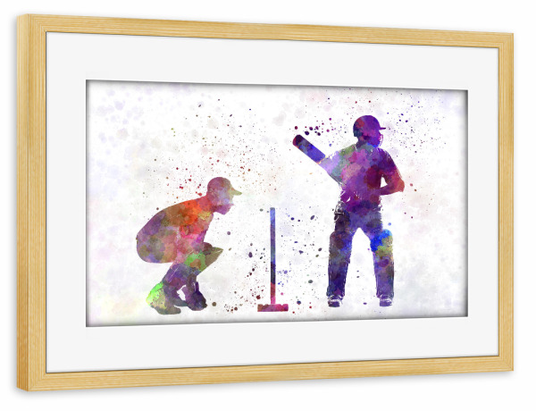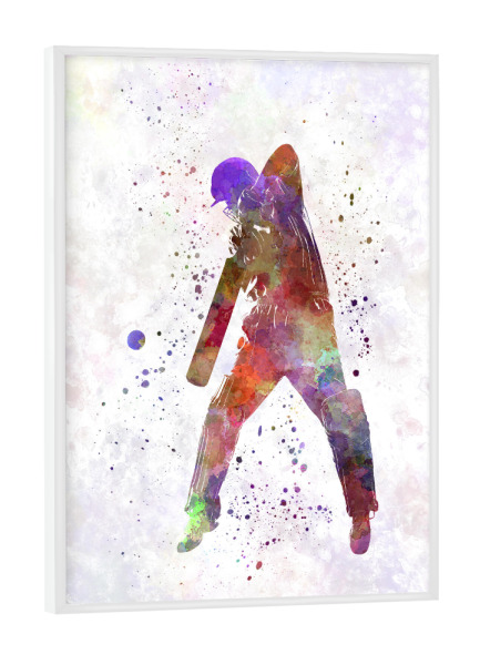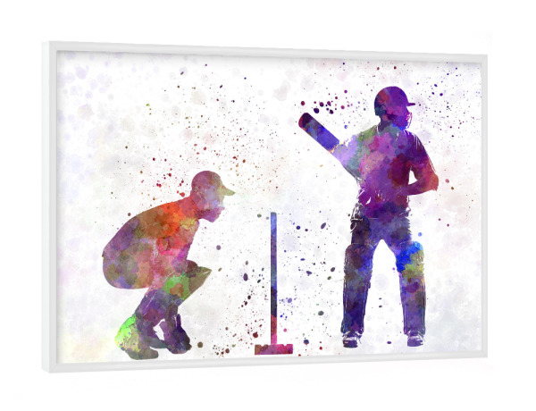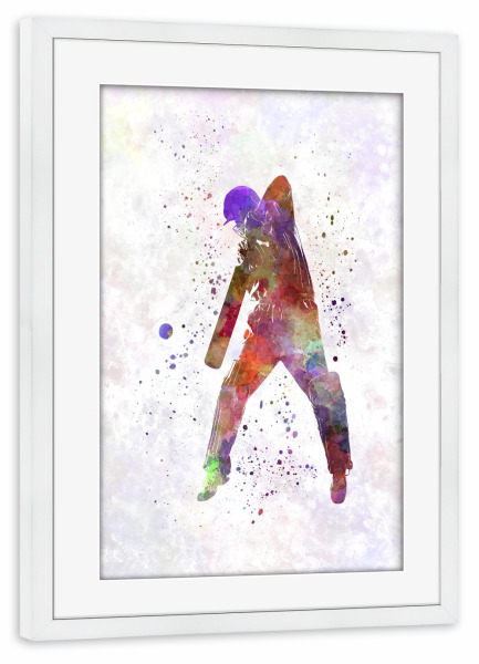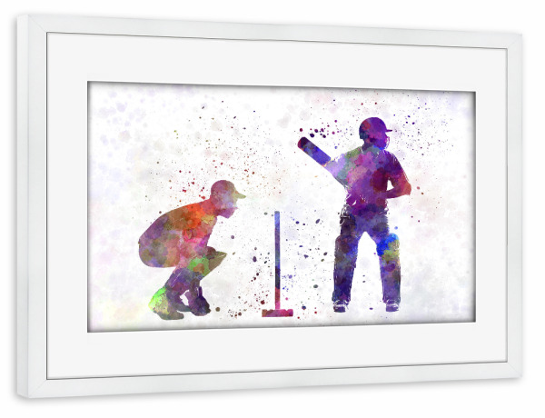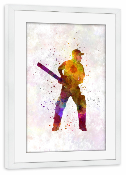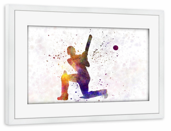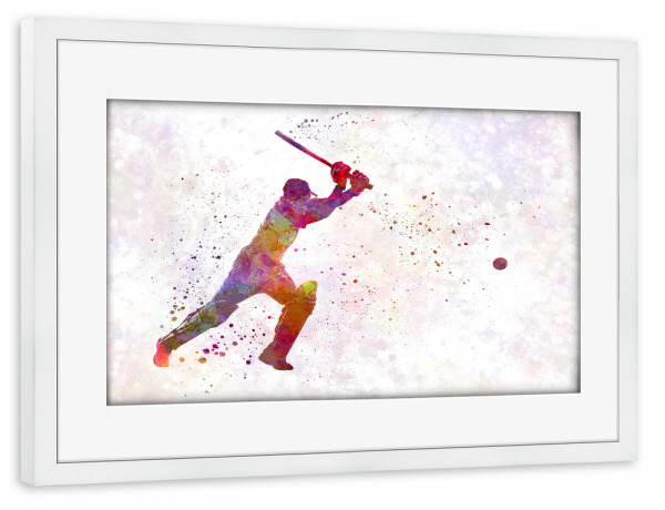 Poster mit Rahmen weiß "Cricket player" artboxONE - Sport - Sport,Sports,Color,Illustration,Cricket,Bat,Ball,Player,Stadium,America,Batsman