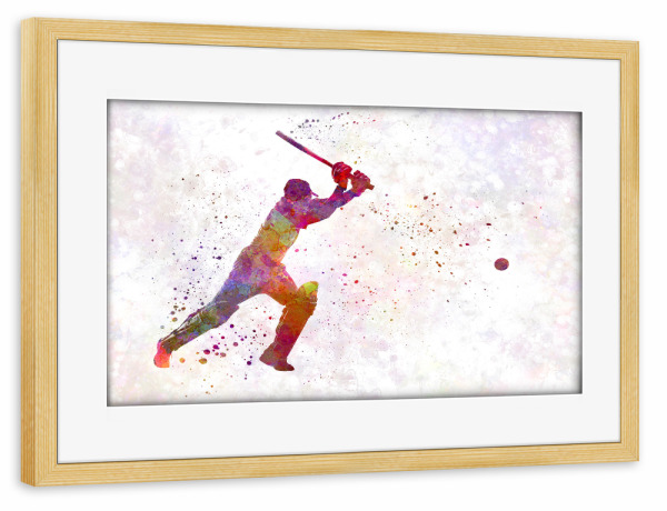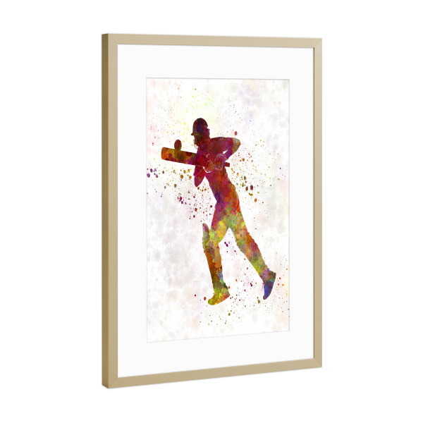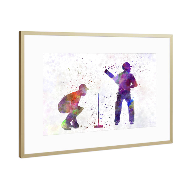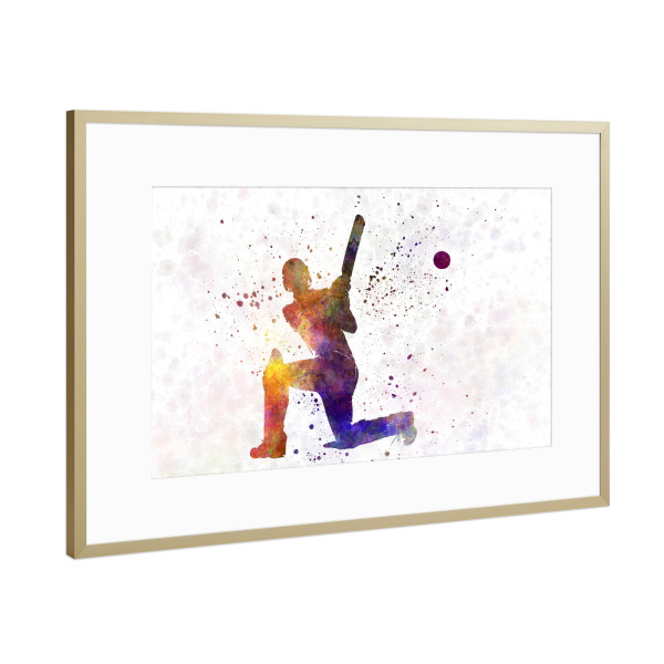 Poster mit Rahmen Gold "Cricket player batsman" artboxONE - Sport - Sport,Sports,Color,Cricket,Bat,Ball,Player,Stadium,America,Bunt,Colorful