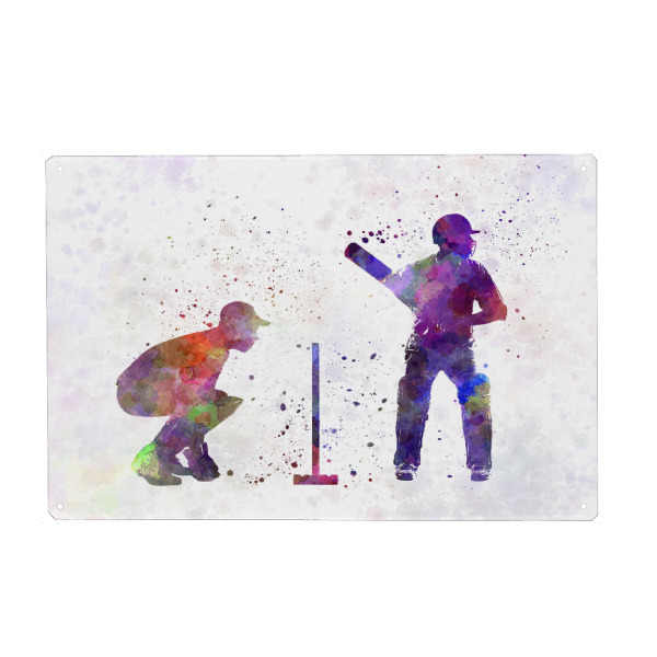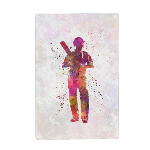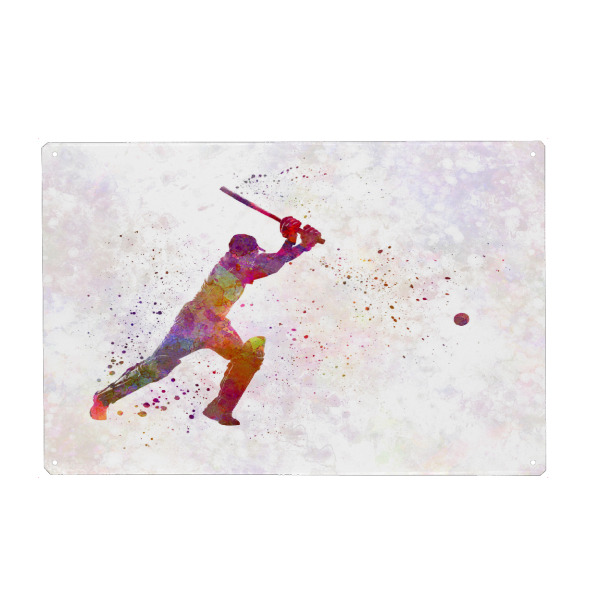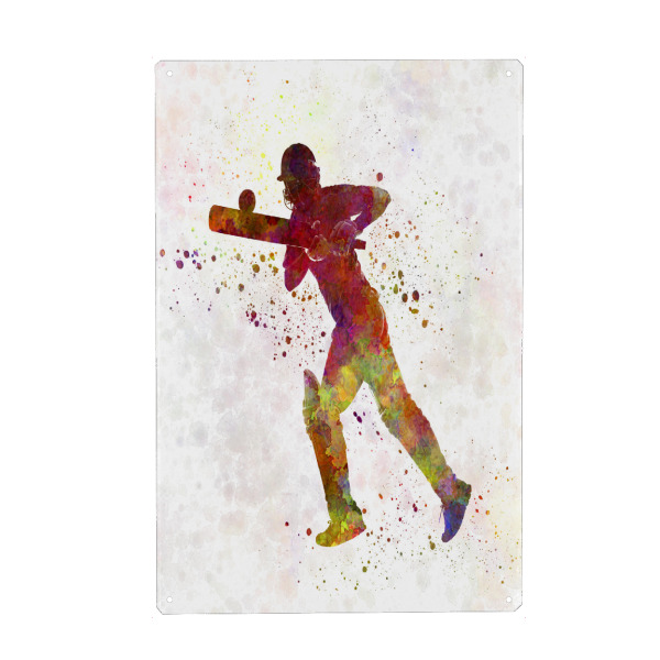 Metall Poster "Cricket player batsman" artboxONE - Sport - Sport,Sports,Color,Cricket,Bat,Ball,Player,Stadium,America,Bunt,Colorful - Blechschild