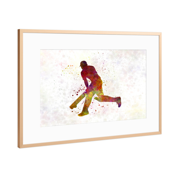 Poster mit Rahmen Gold "Cricket player batsman-h" artboxONE - Sport - Sport,Sports,Color,Illustration,Cricket,Bat,Ball,Player,Stadium,America,Batsman