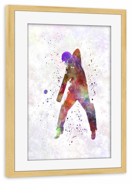 Poster mit Rahmen kiefer "Cricket player batsman-b" artboxONE - Sport - Sport,Sports,Color,Illustration,Cricket,Bat,Ball,Player,Stadium,America