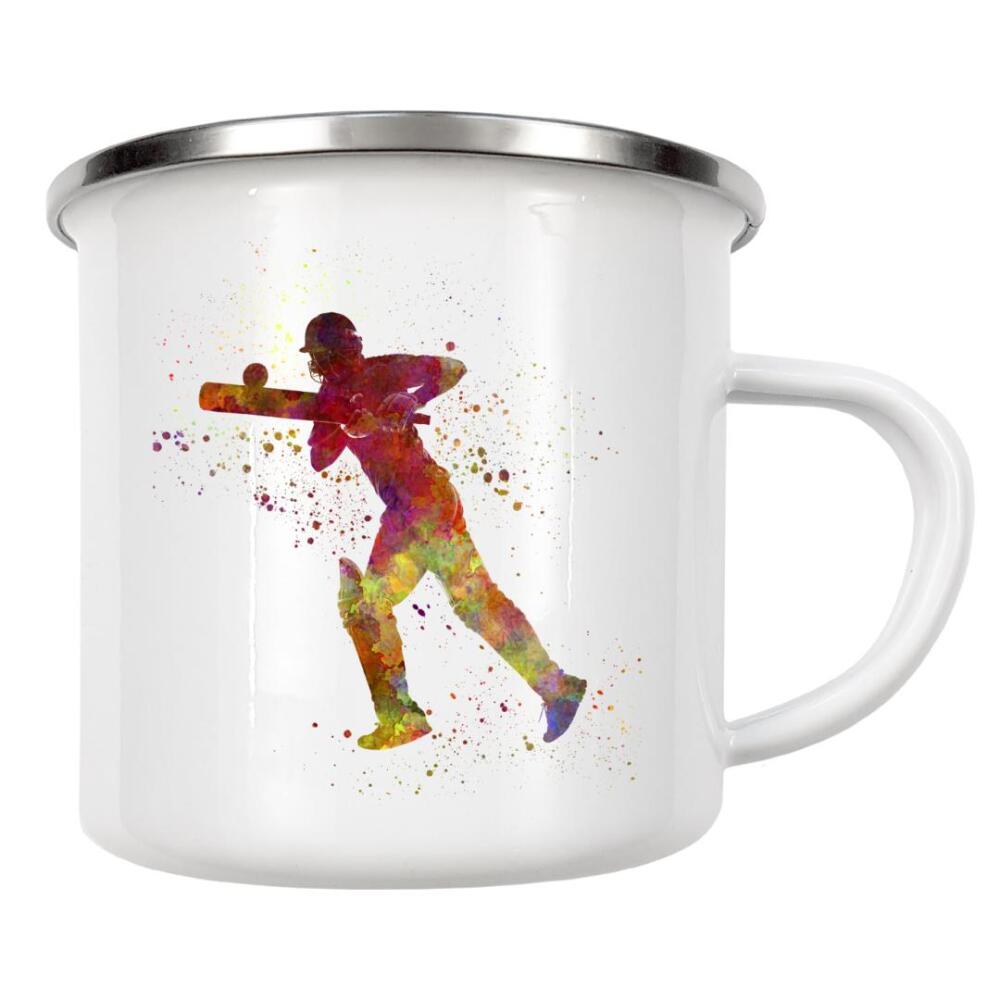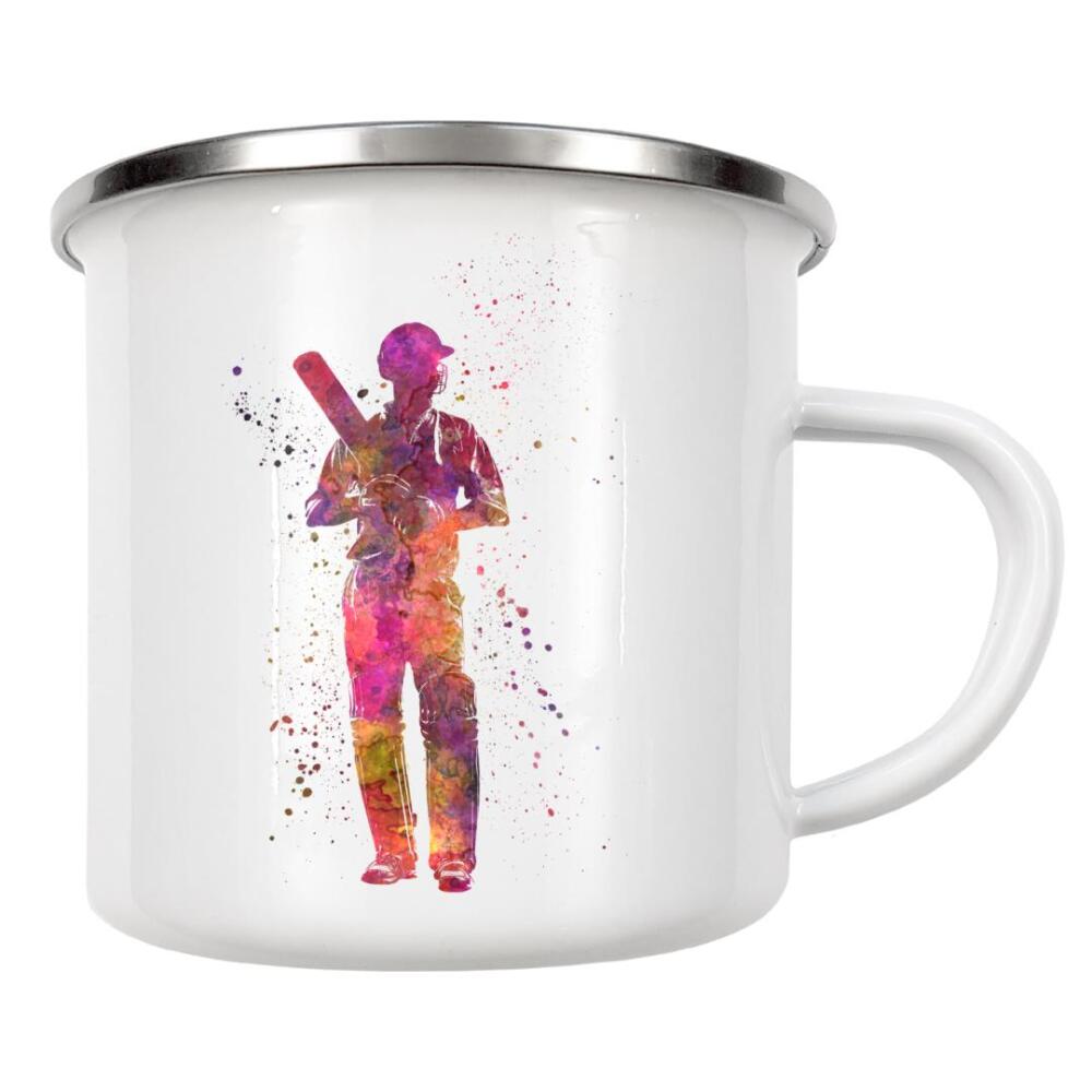 Emaille Tasse "Cricket player batsman-f" artboxONE - Sport - Sport,Sports,Color,Illustration,Cricket,Bat,Ball,Player,Stadium,America,Batsman