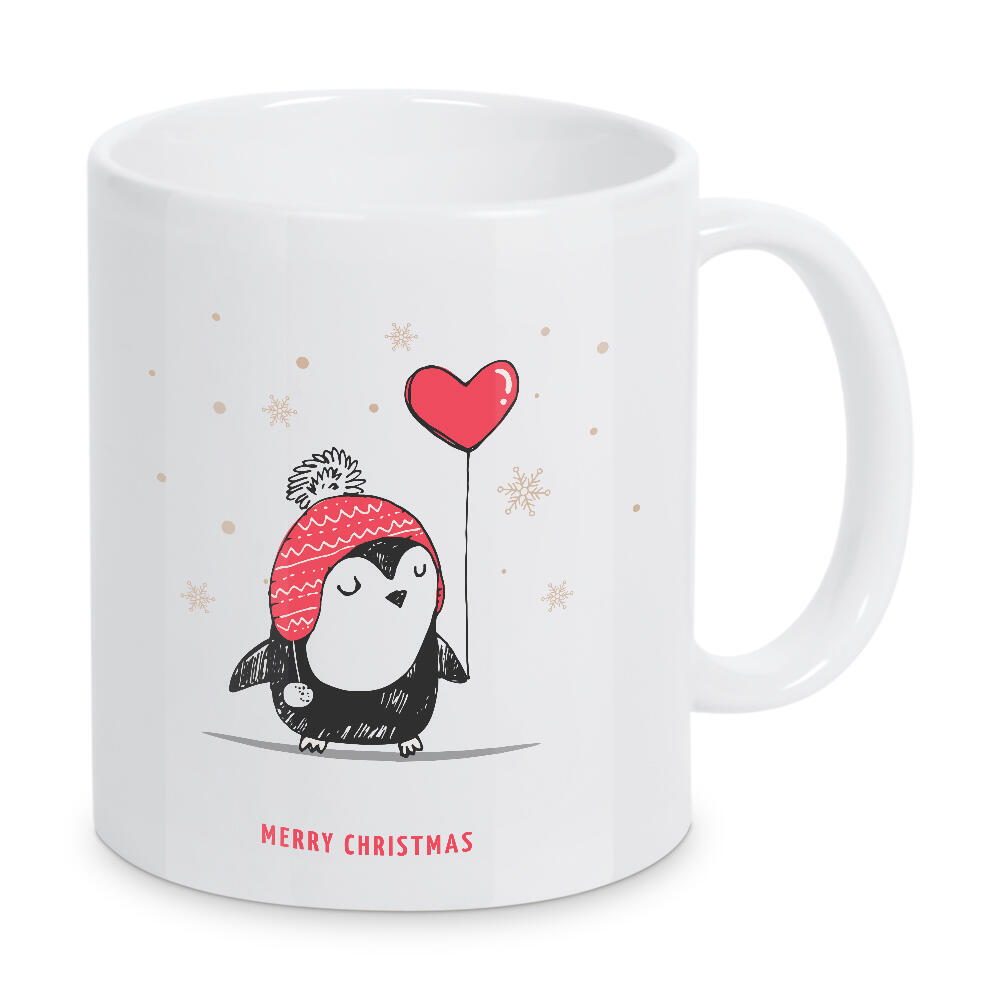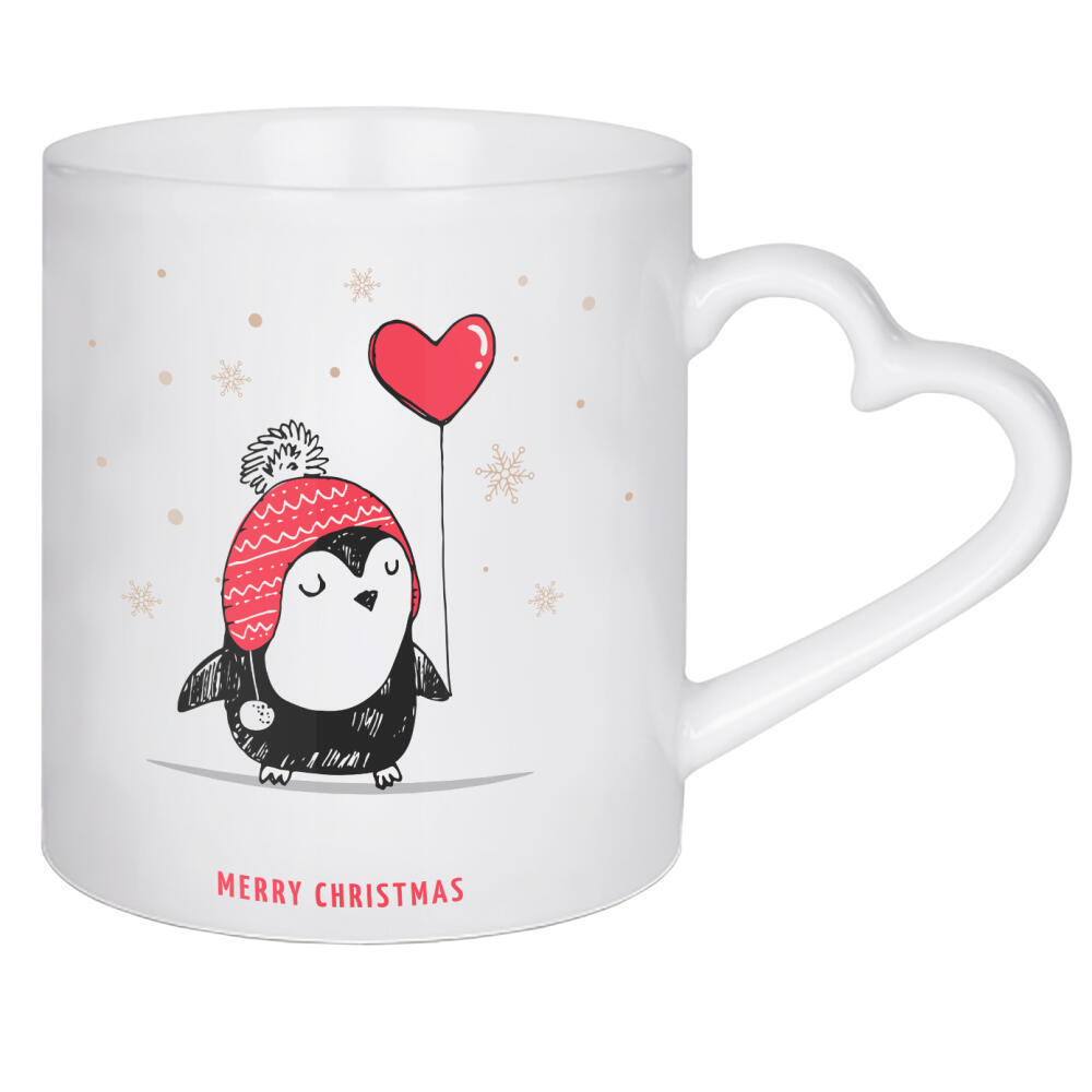 Herztasse "Frohe Weihnachten kleiner Pinguin" artboxONE - Tiere,Weihnachten - Merrychristmas,Holidays,Cute,Balloon,Animal,Christmas,Penguin