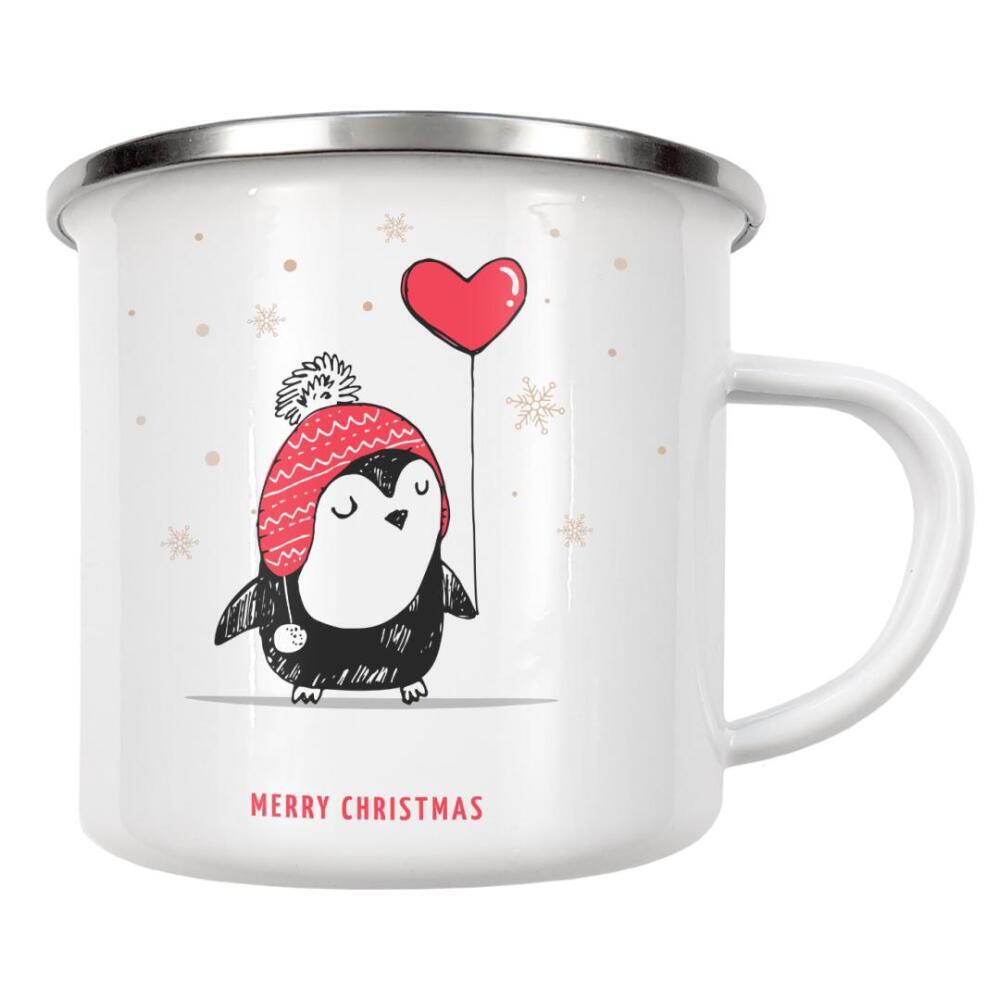 Emaille Tasse "Frohe Weihnachten kleiner Pinguin" artboxONE - Tiere,Weihnachten - Merrychristmas,Holidays,Cute,Balloon,Animal,Christmas,Penguin
