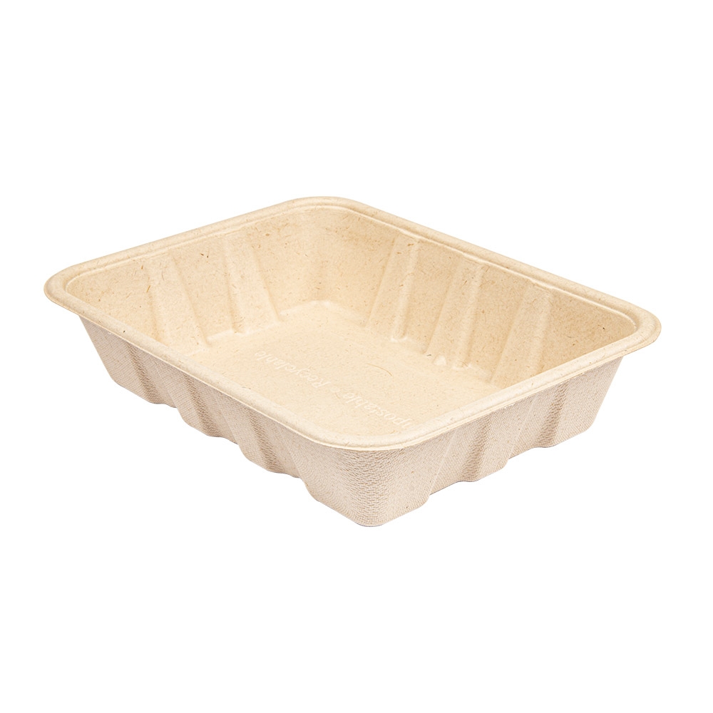 Recipiente retangular feito de polpa natural ecológica e compostável de 800 ml. Bandeja descartável -Modelo: ECP015