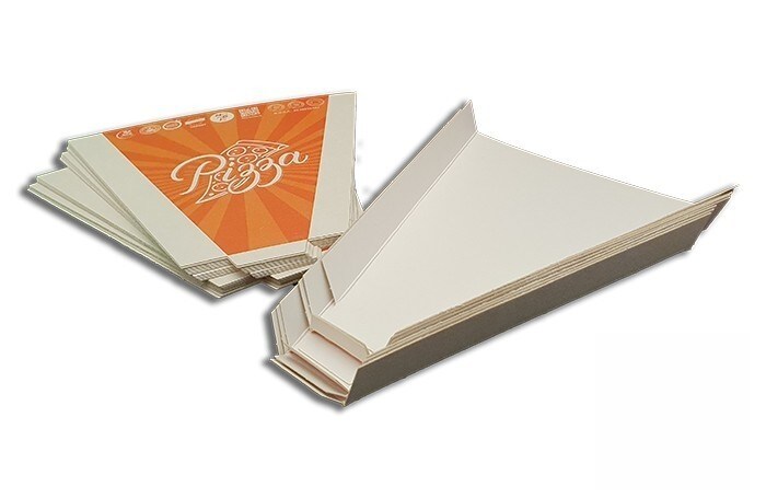 Embalagem do cardápio. Cunha de papelão para fatia de pizza 19x18. Bandejas descartáveis - Modelo: CCP007