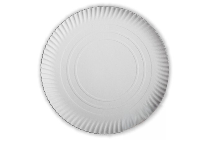 Bandeja descartável redonda de papelão branco de 32 cm especial para guardanapos Rodal. Modelo: PRC008