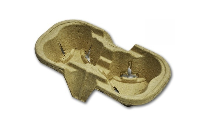 Bandeja porta-copos descartável para transporte de 2 xícaras em papel de fibra modelado. 600 unidades