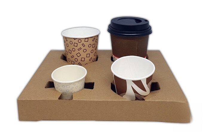 Bandeja porta-copos descartável em papelão kraft para transporte de 4 copos. Modelo: PRV002