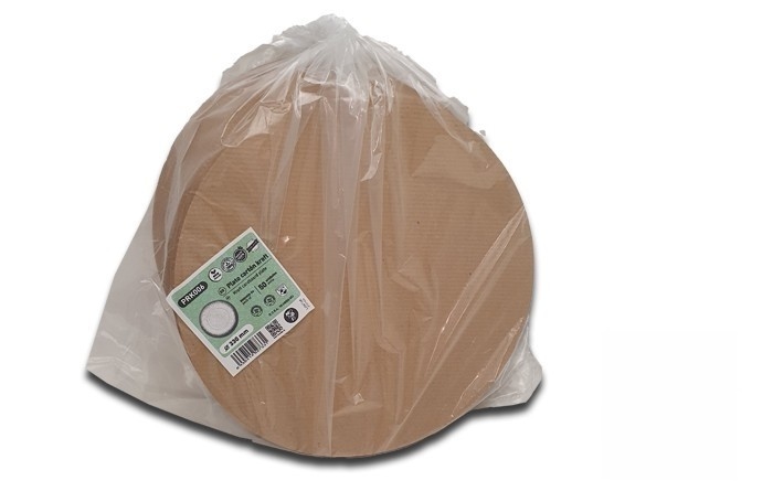 Bandeja descartável redonda de papelão kraft de 21 cm especial para guardanapos rodais. Modelo: PRK001